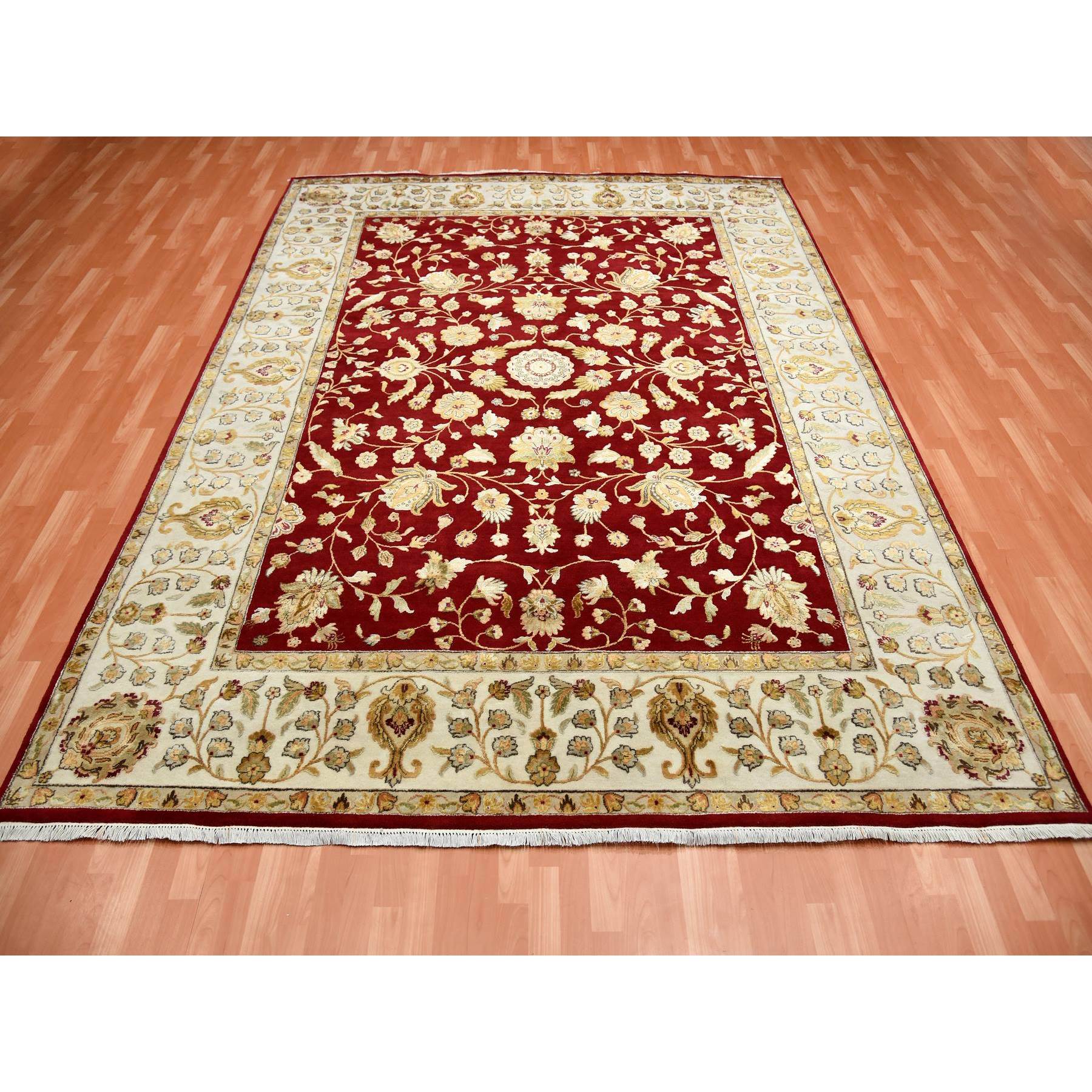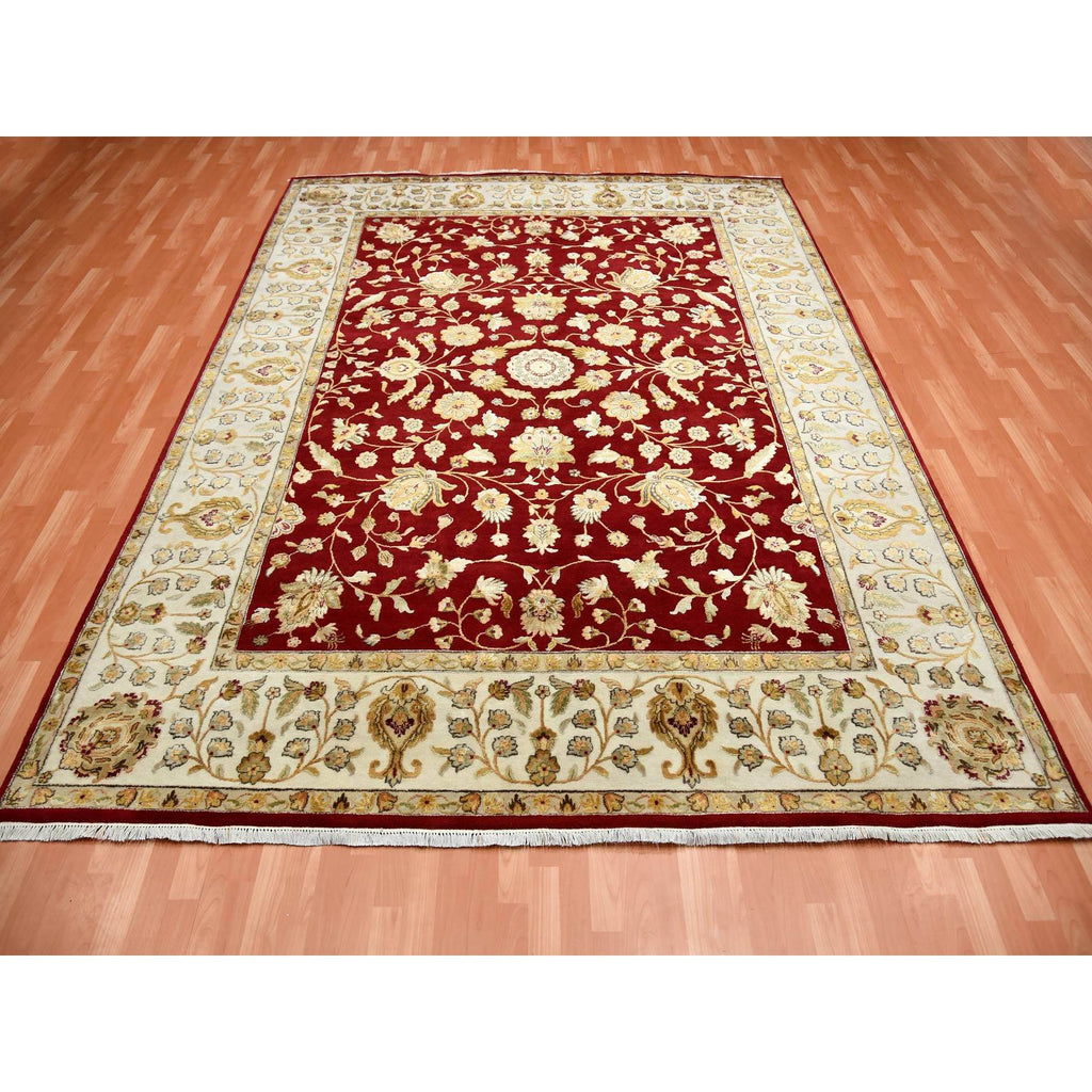 9'x12' Burgundy Red, Rajasthan All Over Leaf Design Thick And Plush, Wool And Silk Hand Knotted, Oriental Rug FWR451590