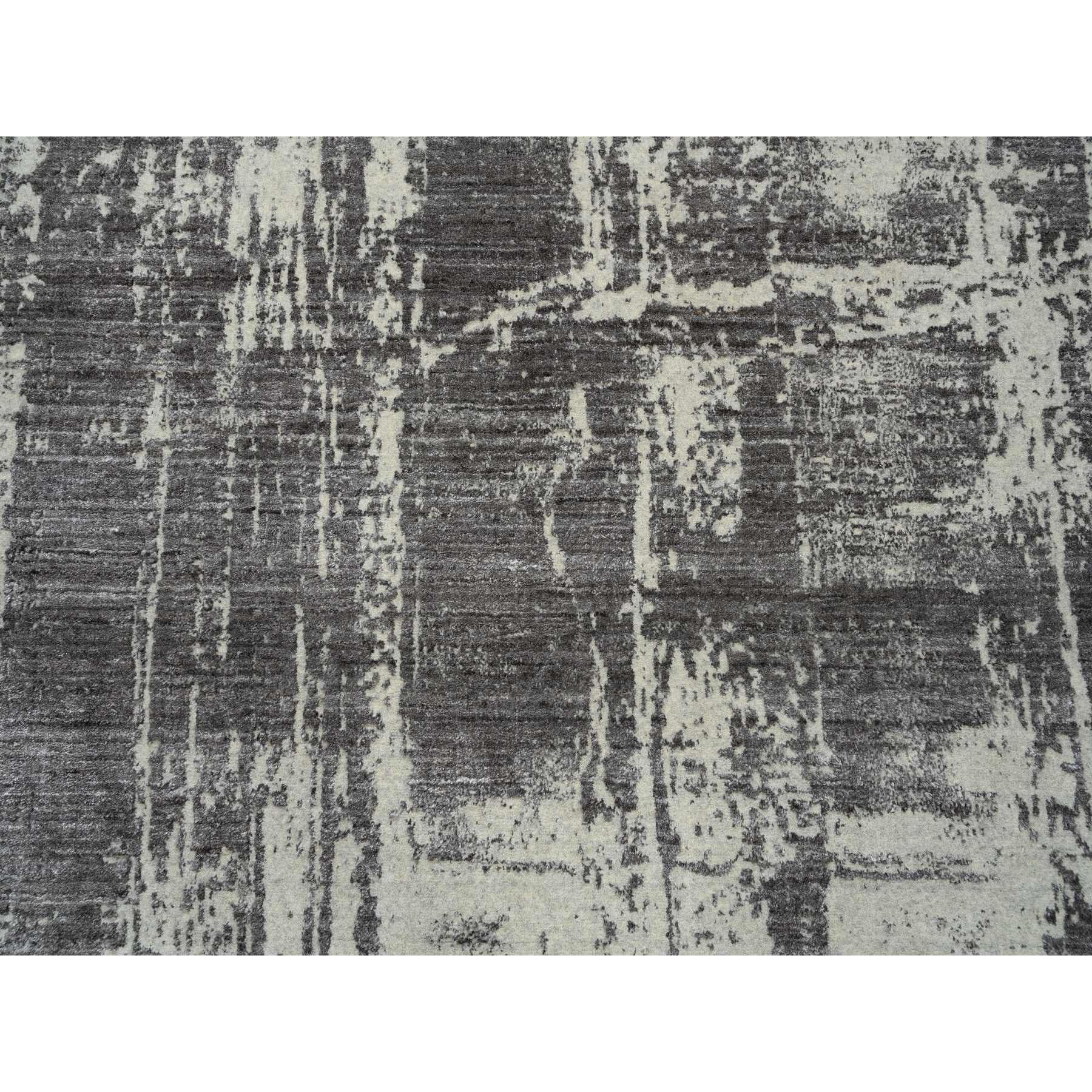 9'x12' Charcoal Black, Tone On Tone, Modern Design, Jacquard Hand Loomed, Wool And Plant Based Silk, Oriental Rug FWR382488