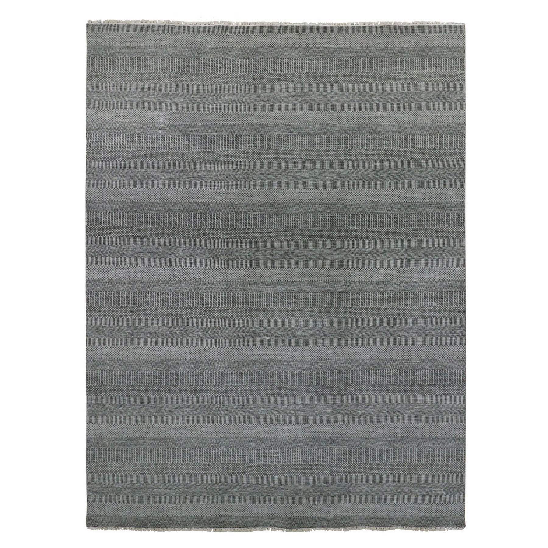 9'x12' Dim Gray, Tone On Tone, Hand Knotted, Modern Grass Design, Natural Undyed Wool, Oriental Rug FWR477666