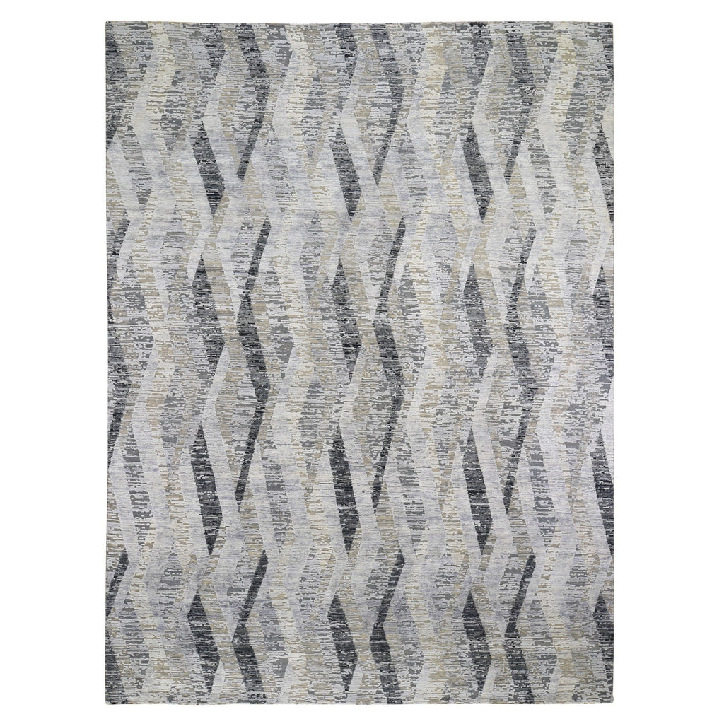 9'x12' Dimensional Curtains Gray Silk With Textured Wool Hand Knotted Oriental Rug FWR354864