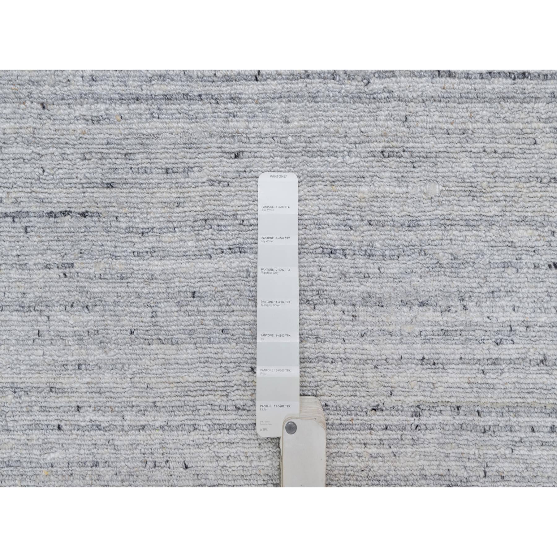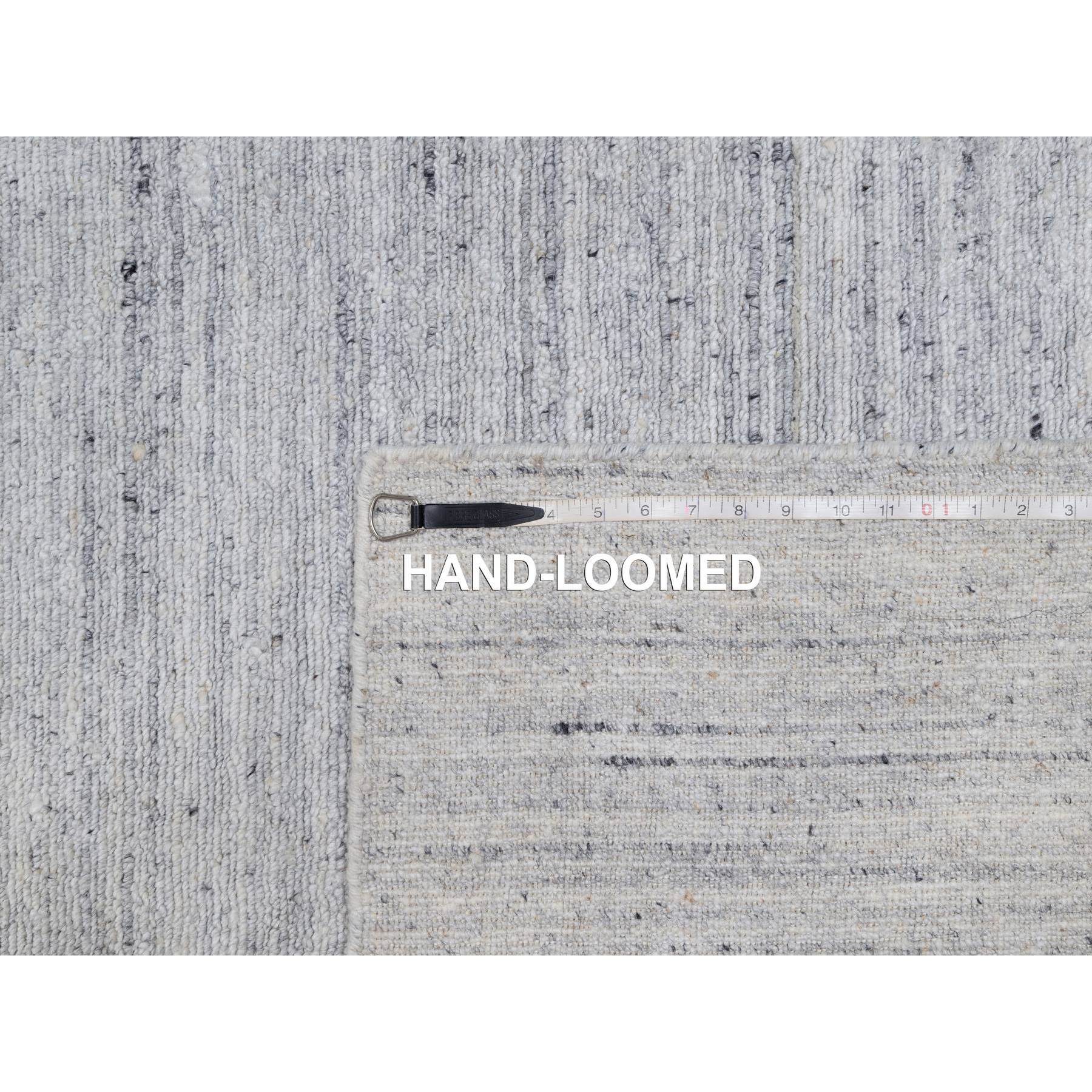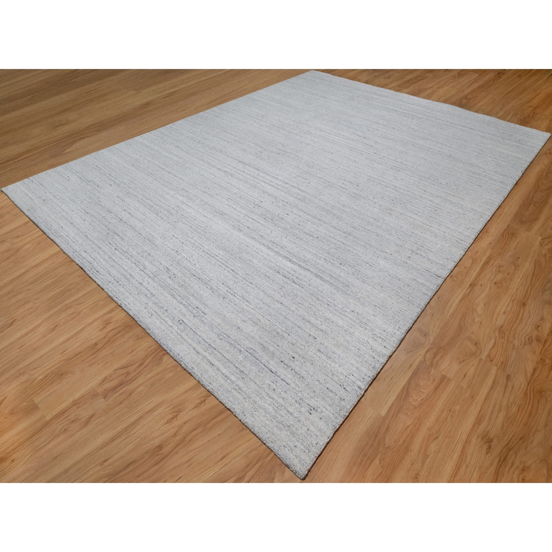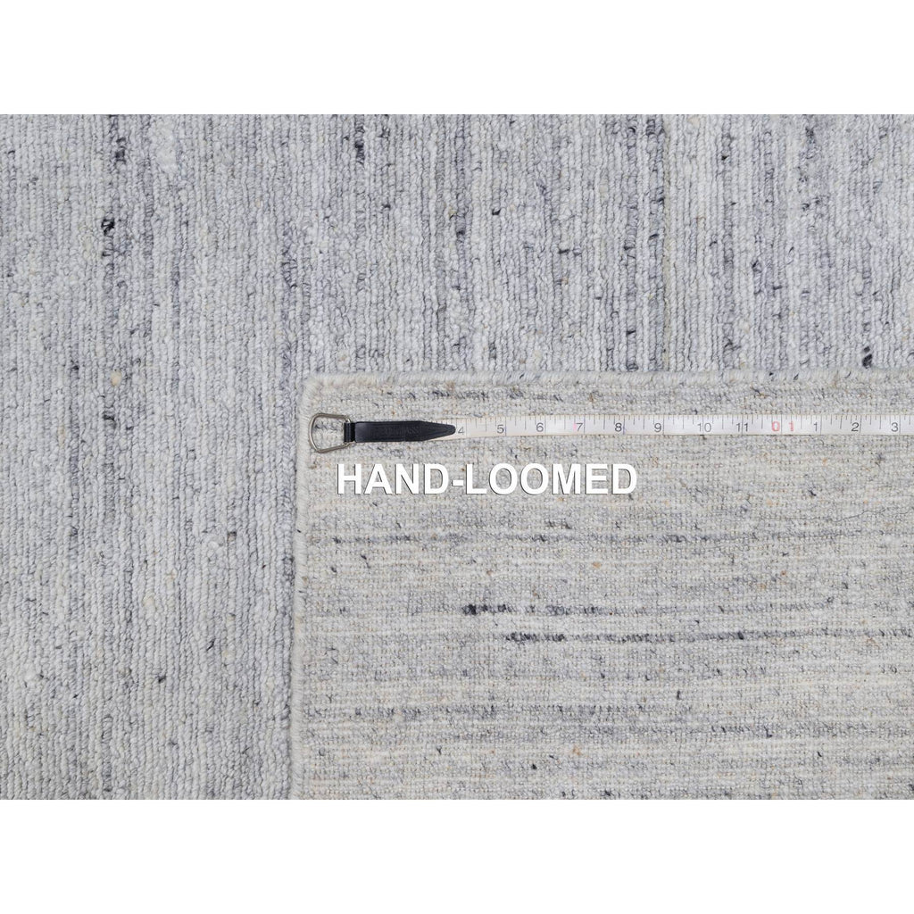 9'x12' Frost White, Natural Wool, Plain Modern Striae Design, Hand Loomed, Soft To The Touch, Oriental Rug FWR547122