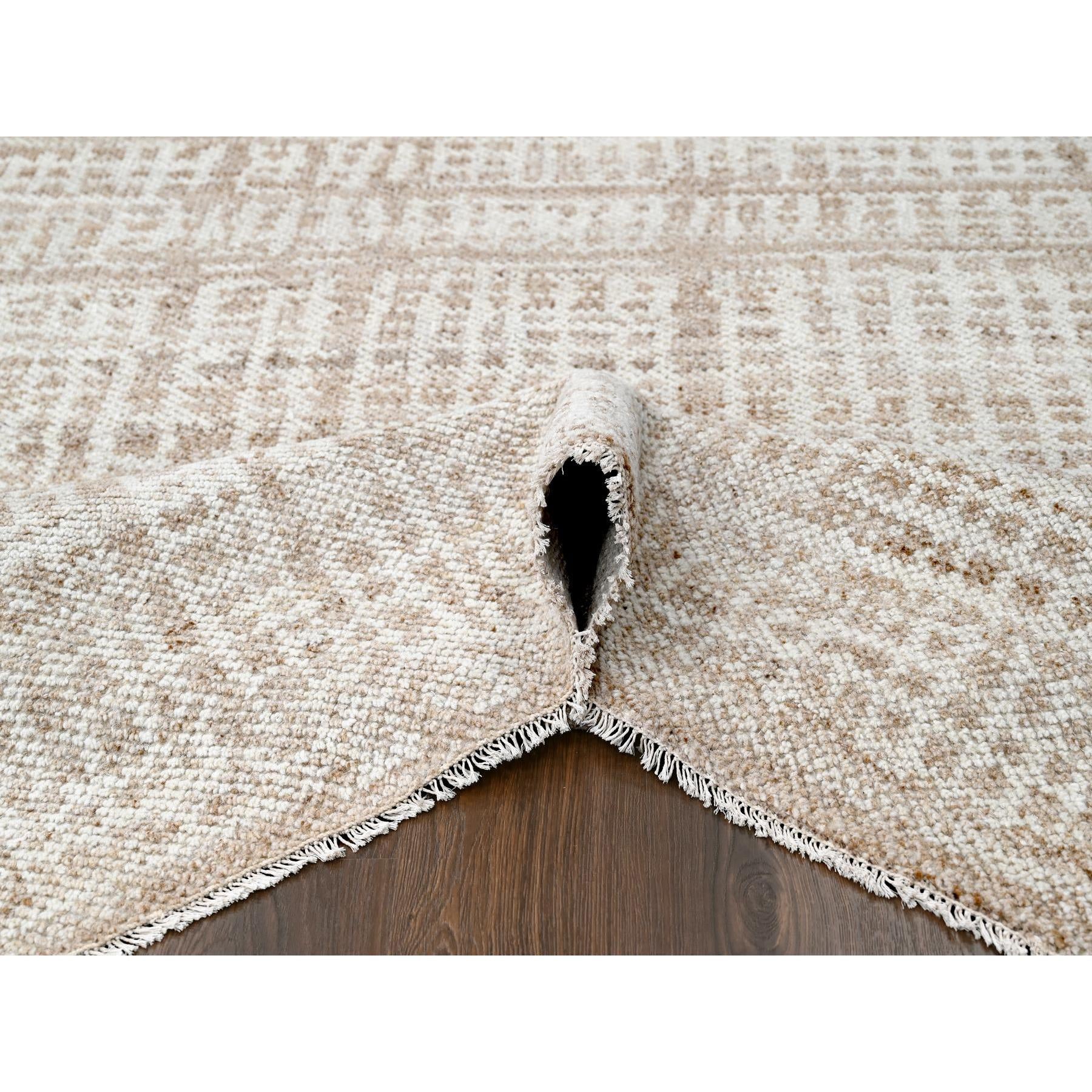 9'x12' Honey Brown, Tone On Tone, Calm Ambience, Dot Design, Cropped Thin, Hand Knotted, Natural Ambient Color, Soft 100% Wool, Oriental Rug FWR507210