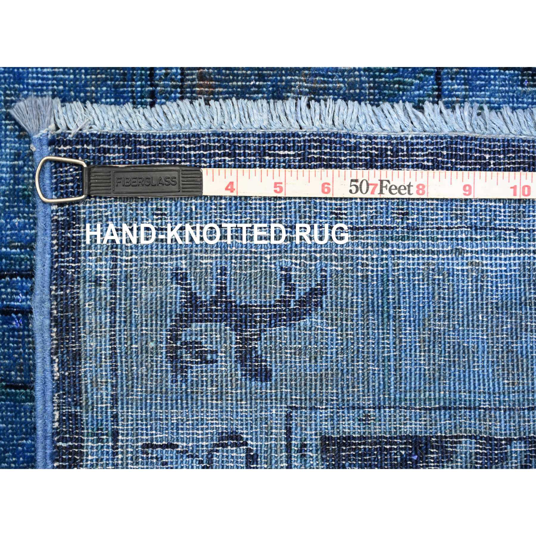9'x12' Imperial Blue, Overdyed Peshawar With Pazyryk Design, Zero Pile, Distressed, Pure Wool, Hand Knotted, Oriental Rug FWR122250
