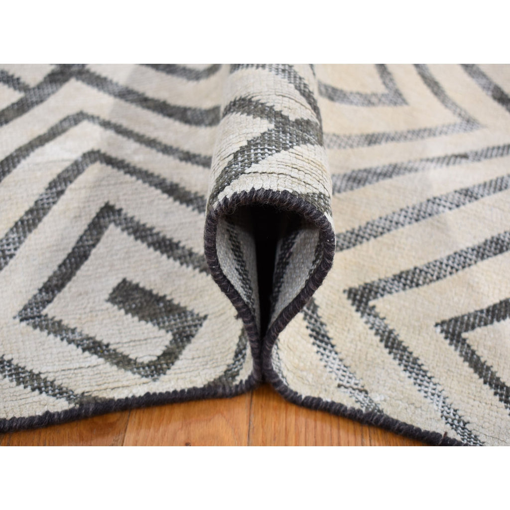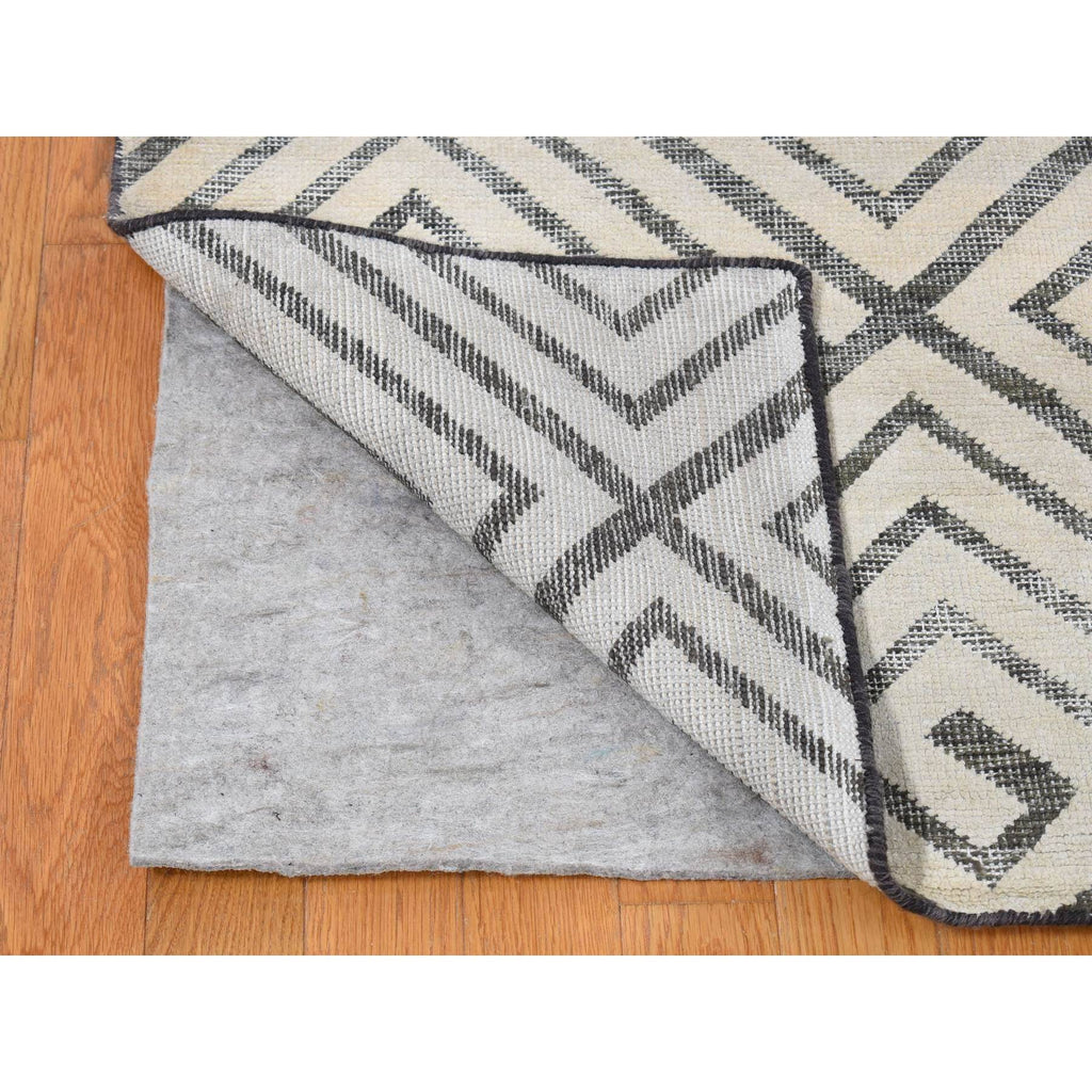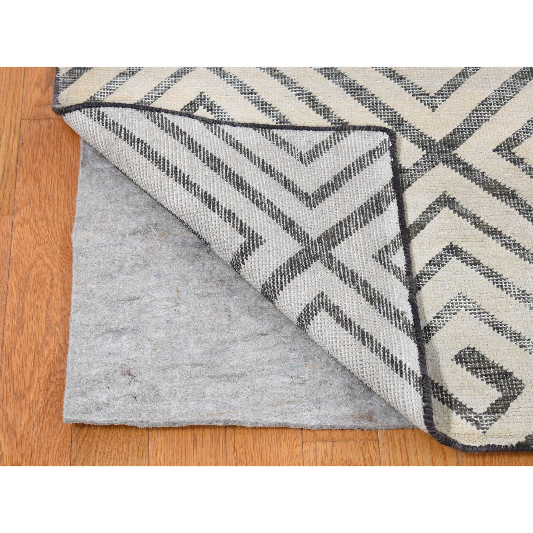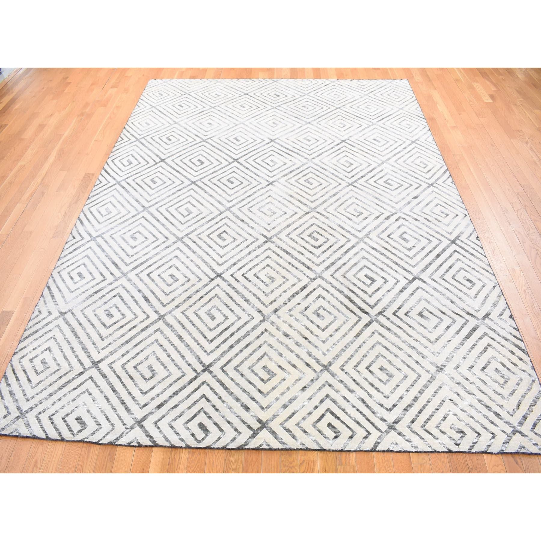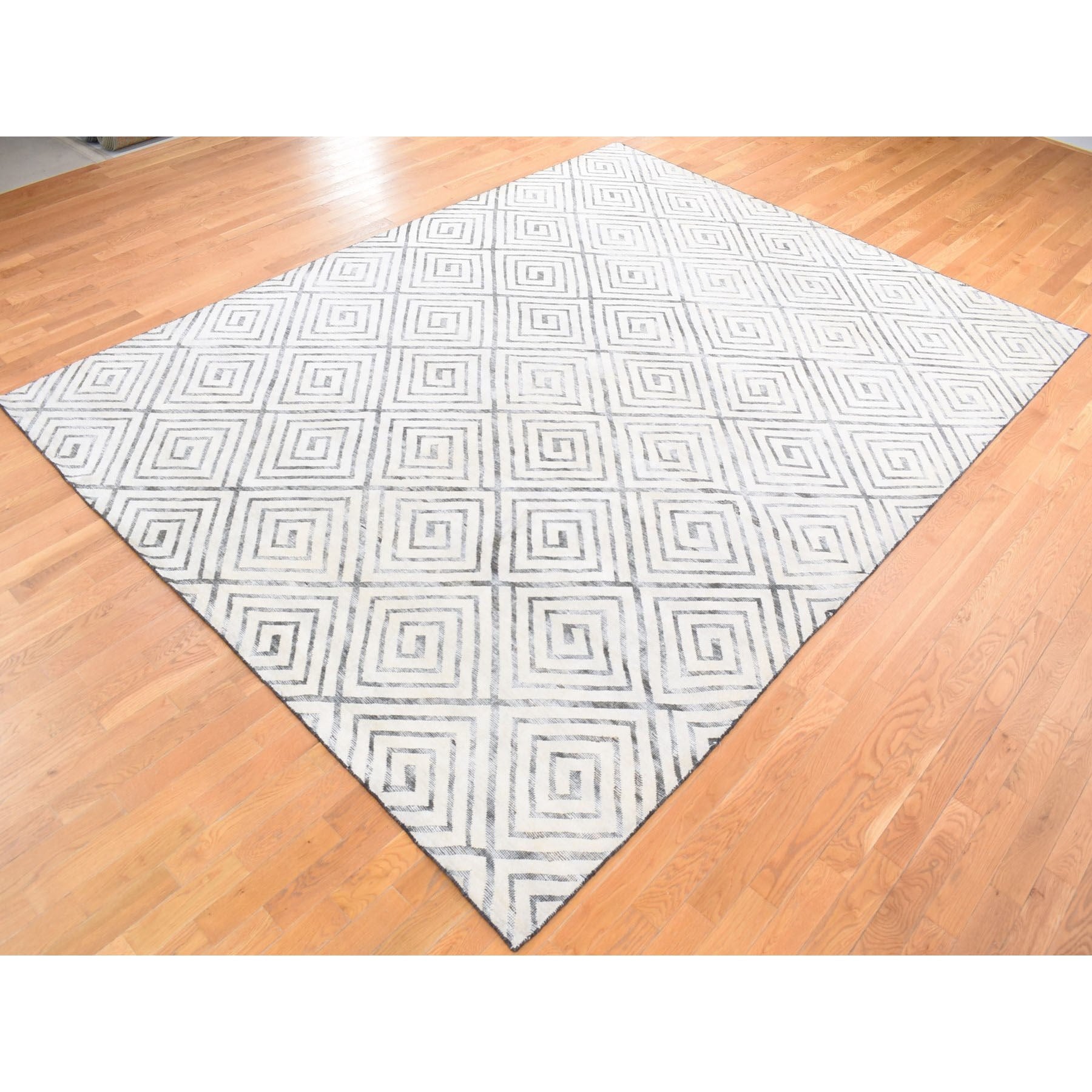 9'x12' Ivory, Roman Key Squares Design, Hand Knotted, Pure Silk With Textured Wool, Modern, Oriental Rug FWR482682