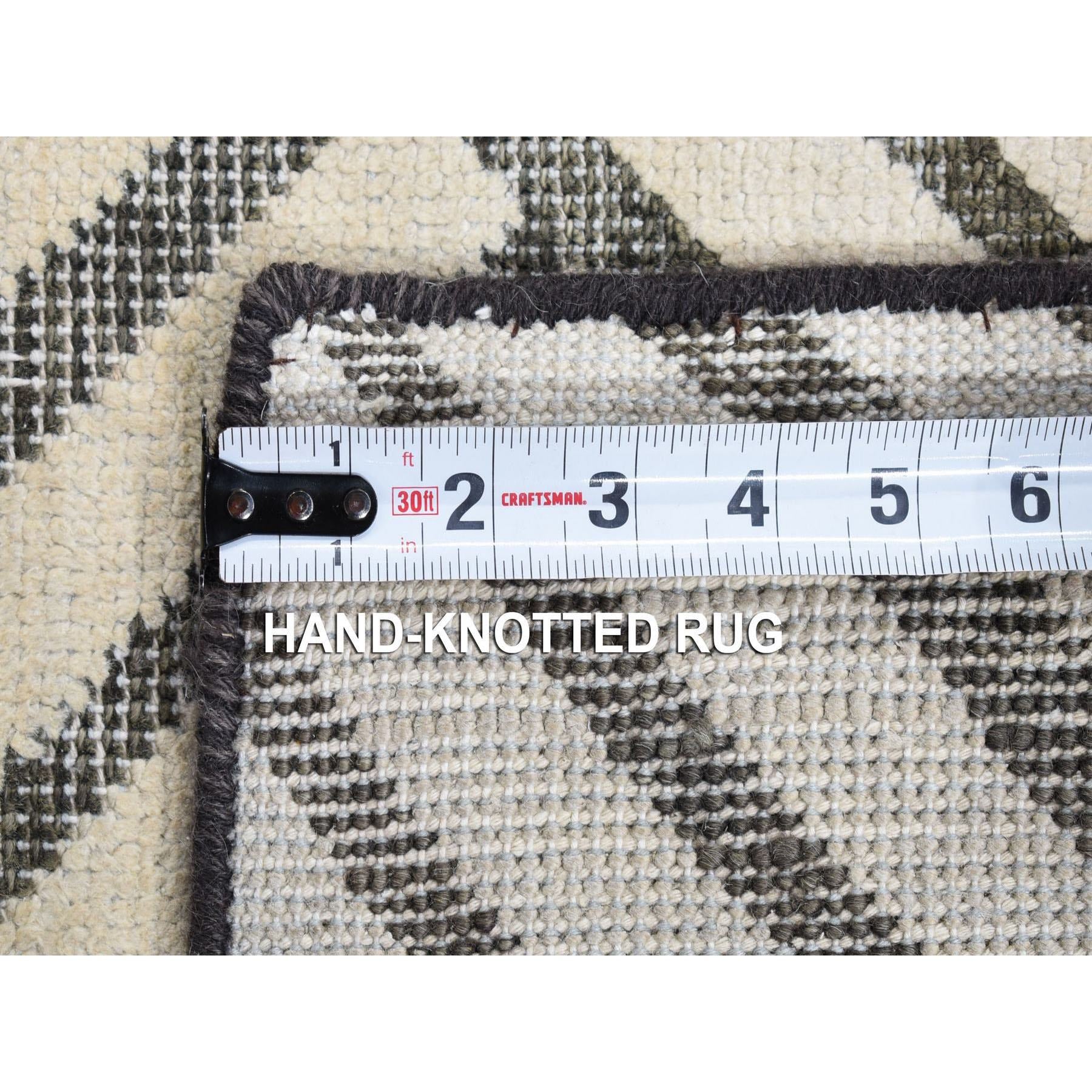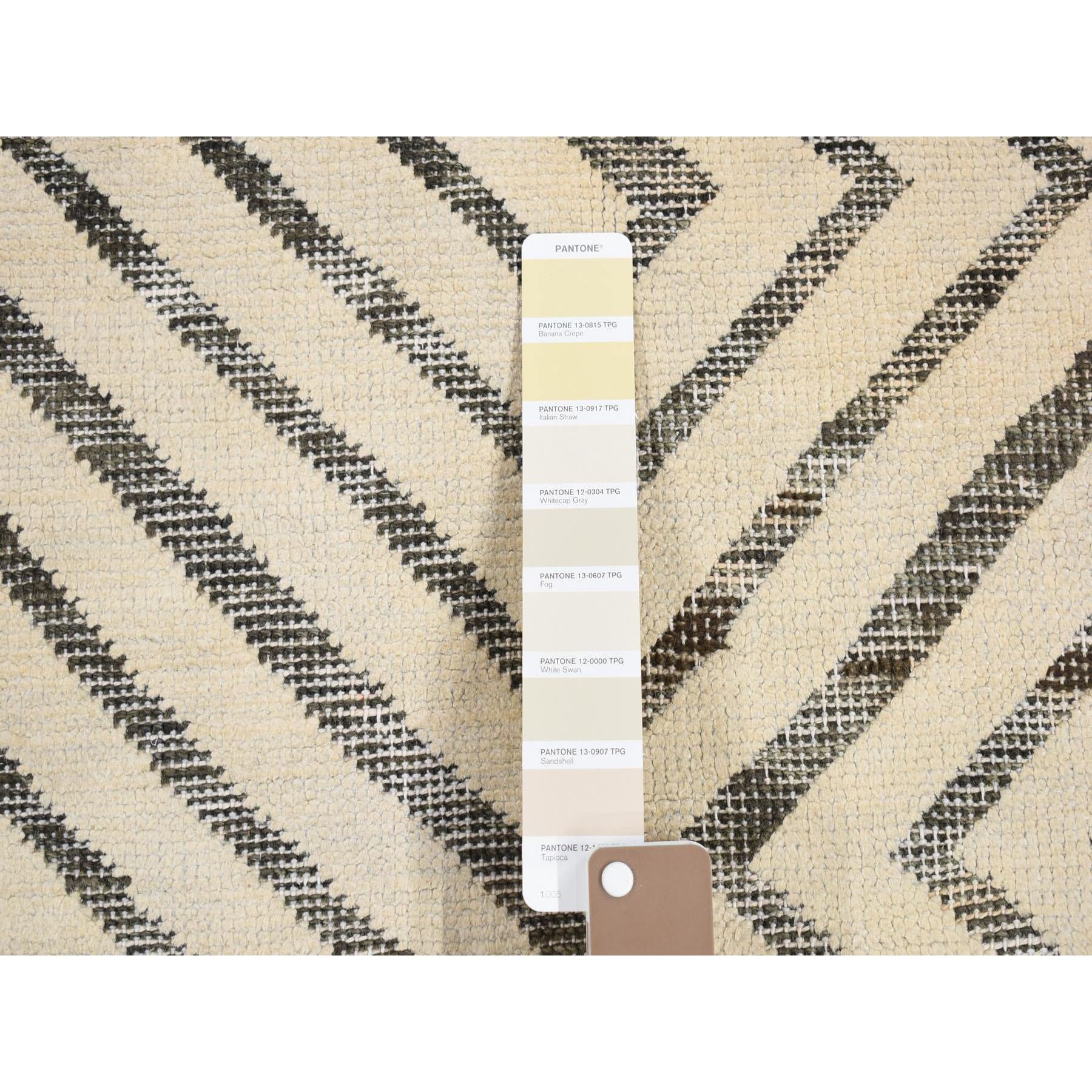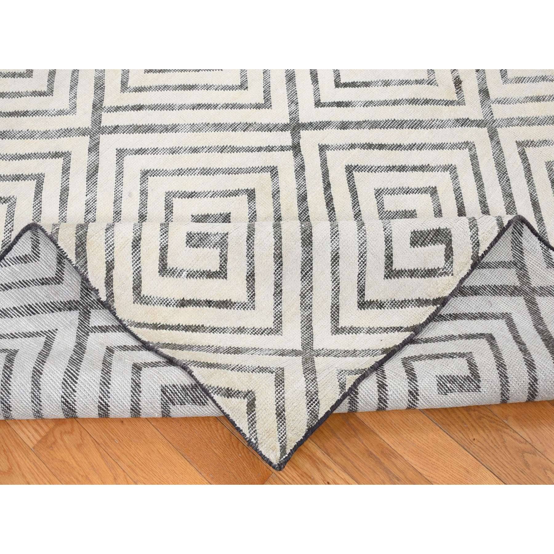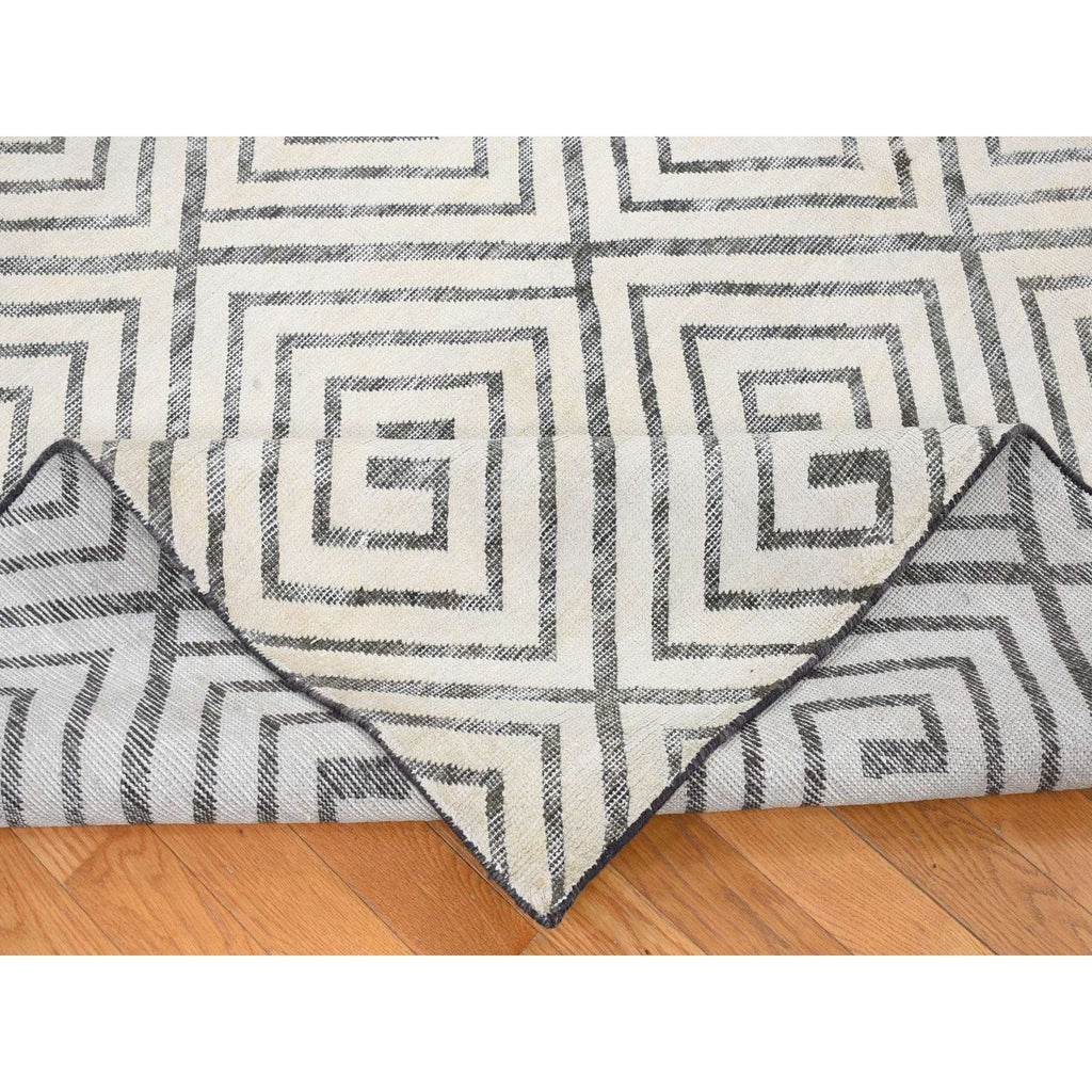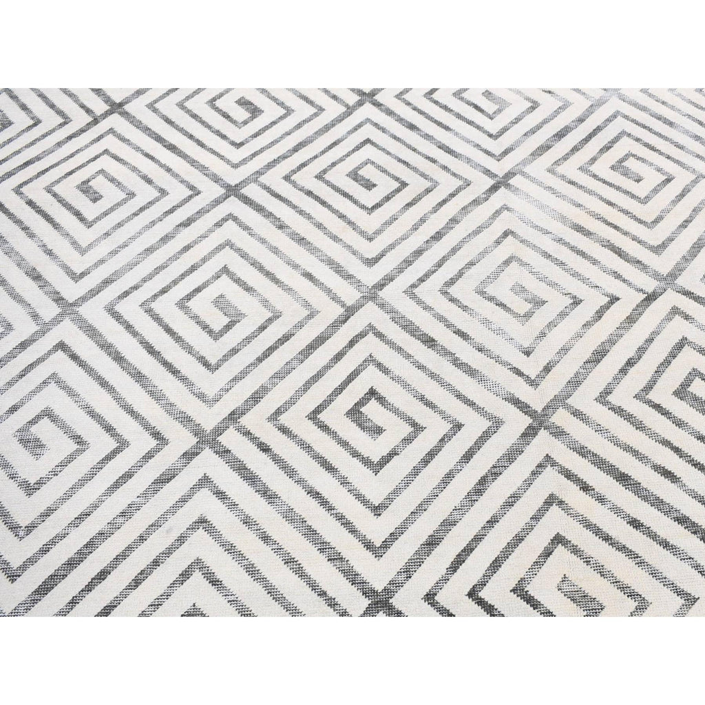 9'x12' Ivory, Roman Key Squares Design, Hand Knotted, Pure Silk With Textured Wool, Modern, Oriental Rug FWR482682