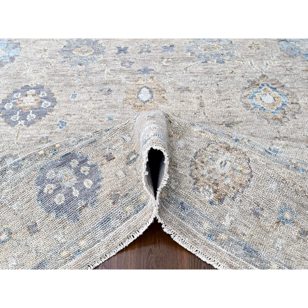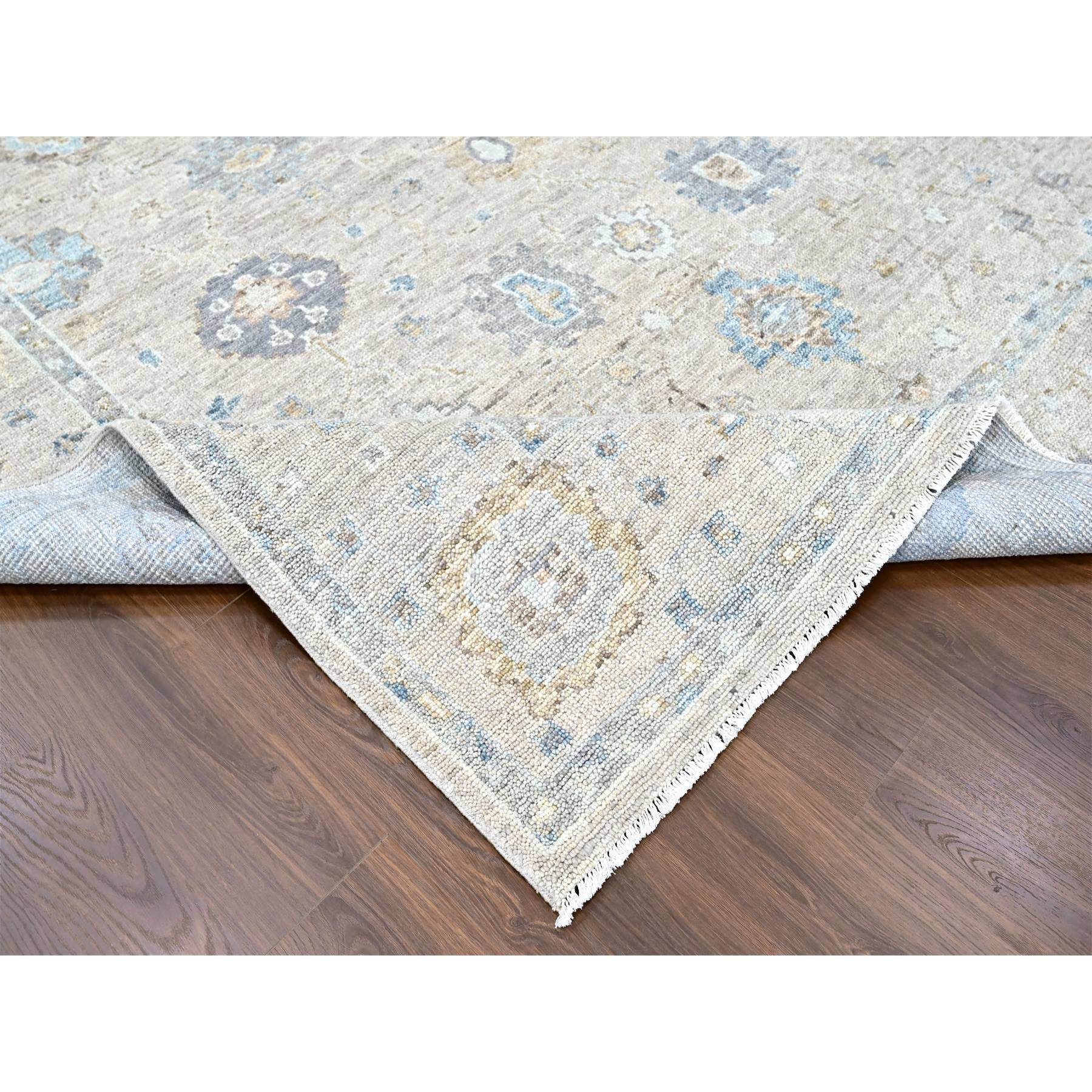 9'x12' Khaki Brown, Supple Collection, Oushak Design, Hand Knotted, Lush And Plush, Pure Wool, Soft Pile, Tone On Tone, Veggie Dyes, Oriental Rug FWR61464