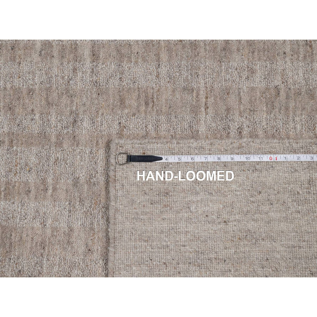 9'x12' Light Brown, Vertical Stripes Design With Salt And Pepper Effect, Undyed Natural Wool, Hand Loomed, Oriental Rug FWR549978