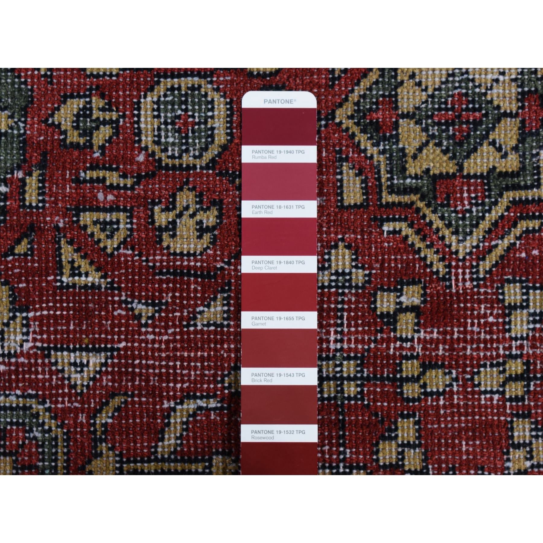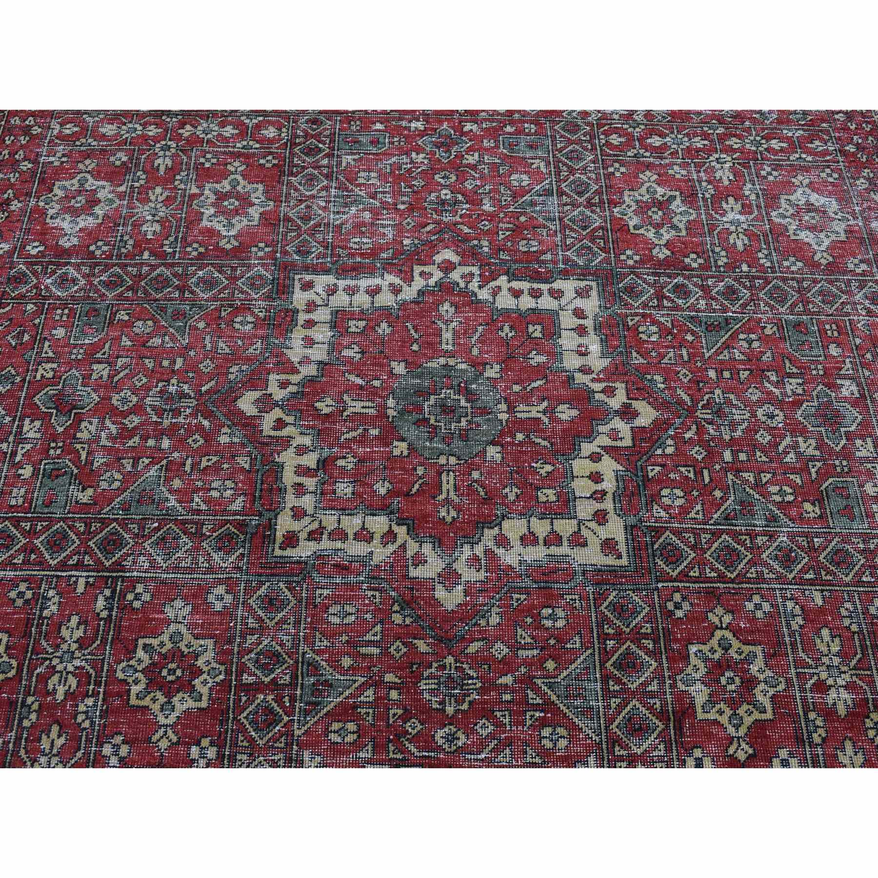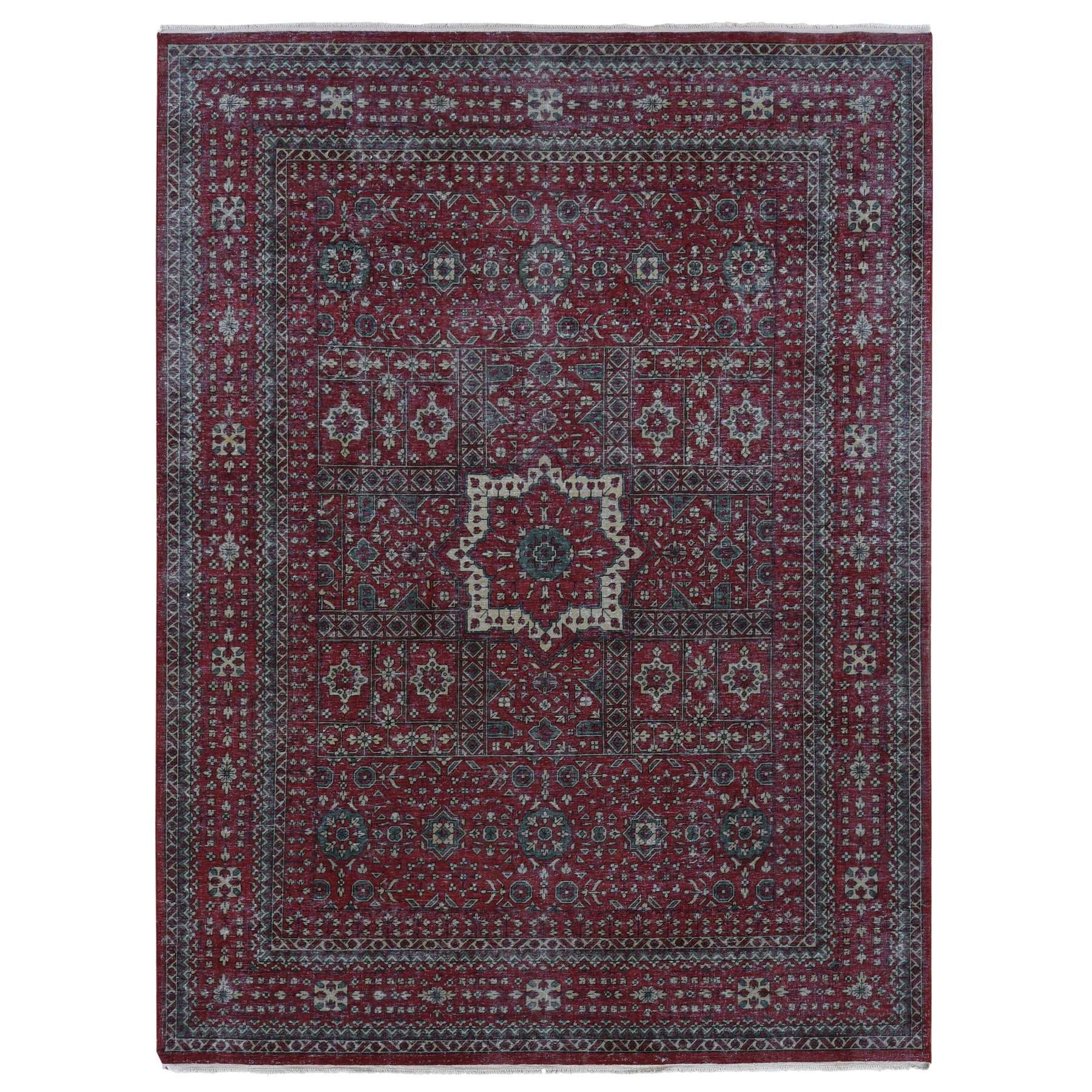 9'x12' Maroon Red, Vintage Look Mamluk, Distressed, Zero Pile Shaved Low, Worn Wool Hand Knotted, Oriental Rug FWR526200