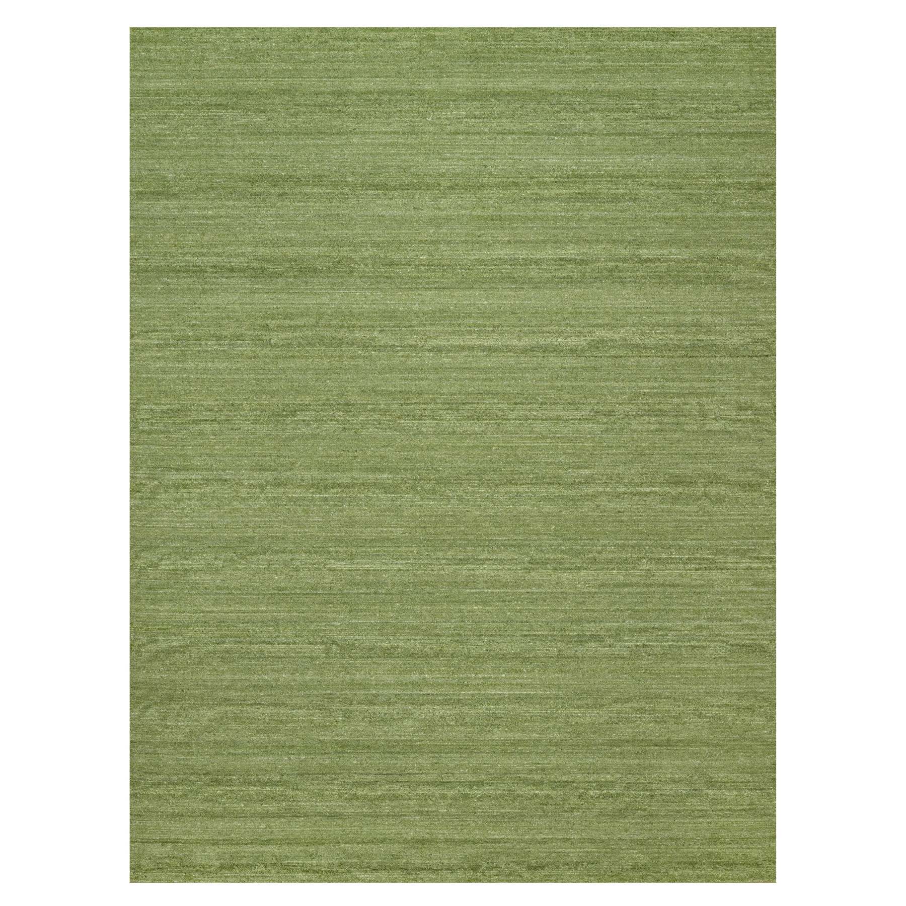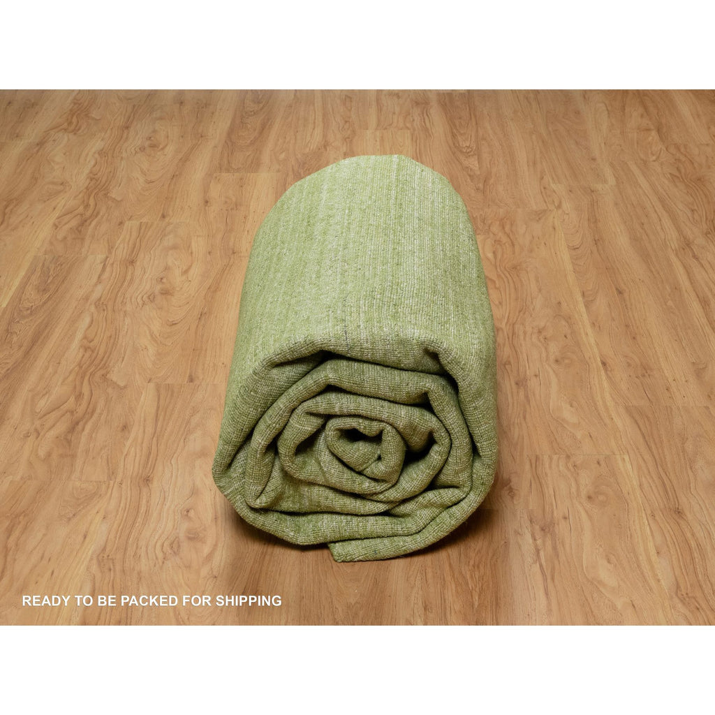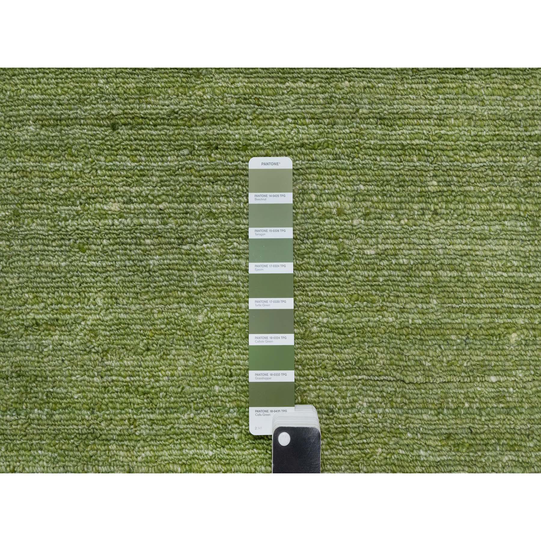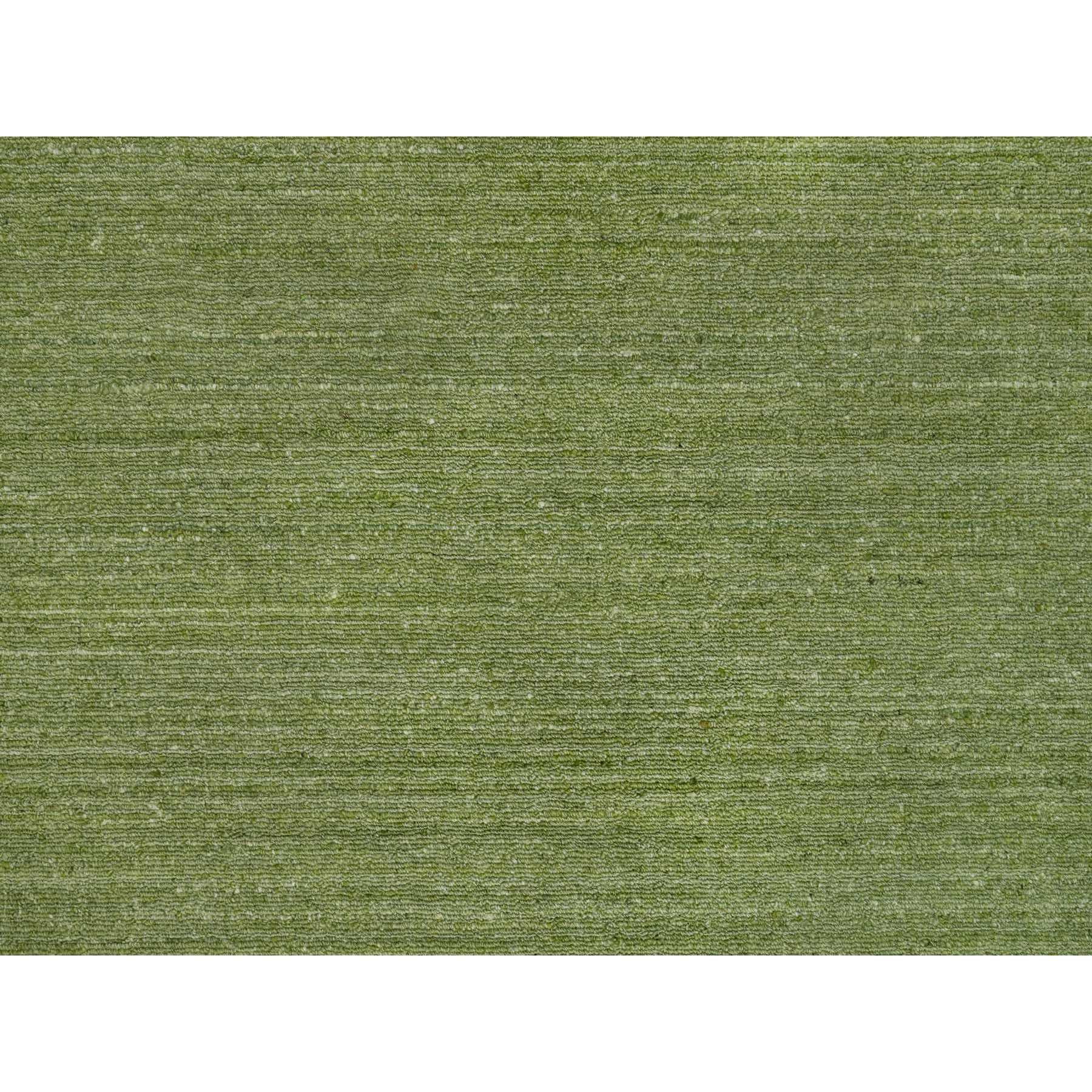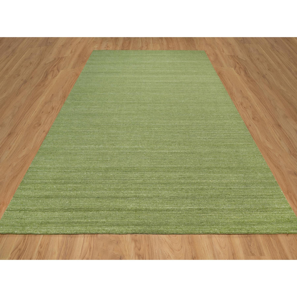9'x12' Olive Green, Plain Modern Striae Design, Tone On Tone, Soft Pile, Pure Wool, Hand Loomed, Oriental Rug FWR547170