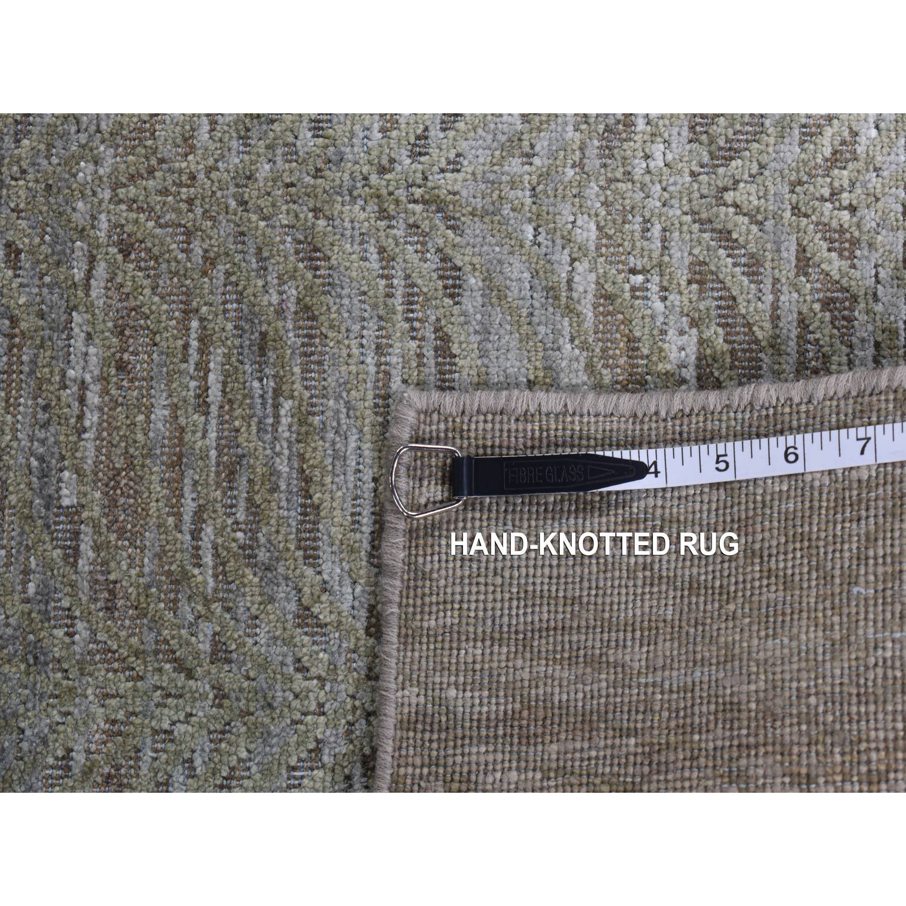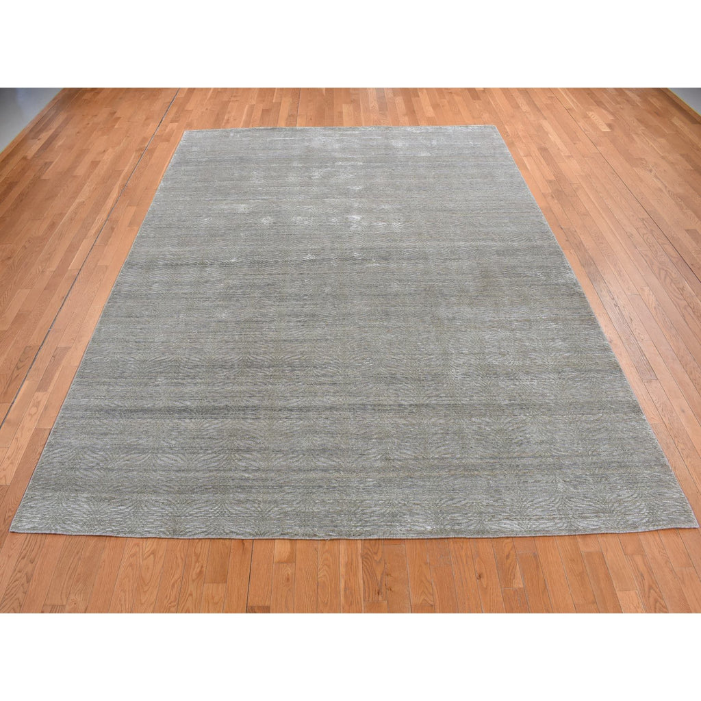 9'x12' Olive Green, Tone On Tone Leaf Design, Silk With Distressed Textured Wool, Hand Knotted, Oriental Rug FWR522756