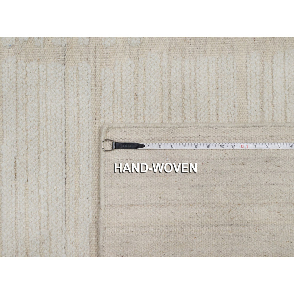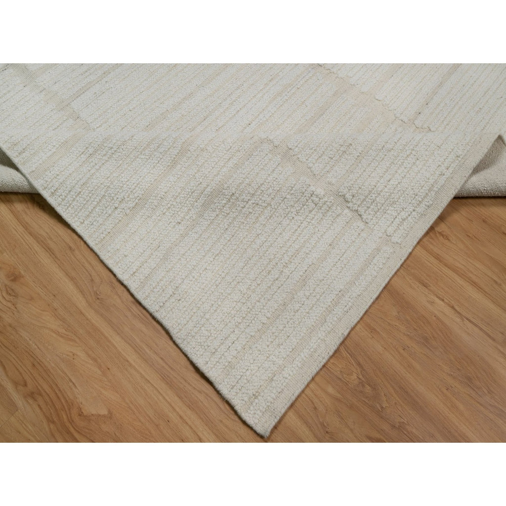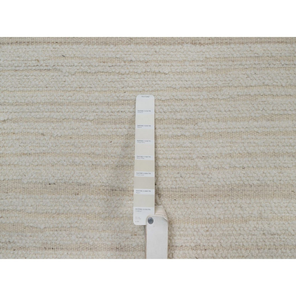 9'x12' Pearl White, Flat Weave With Pile, Tone On Tone, Undyed Natural Wool, Textured, Hand Woven, Oriental Rug FWR550308