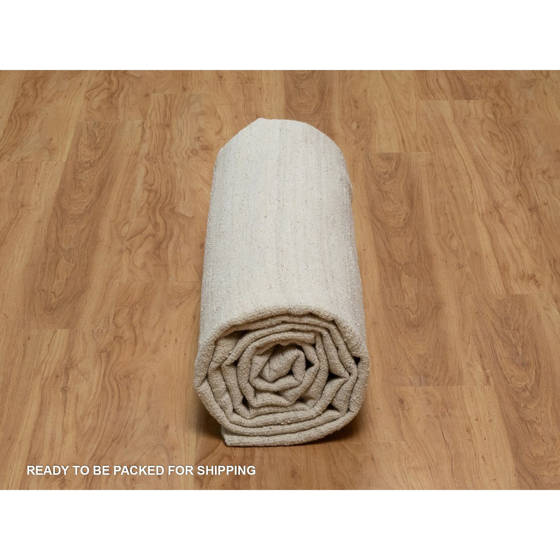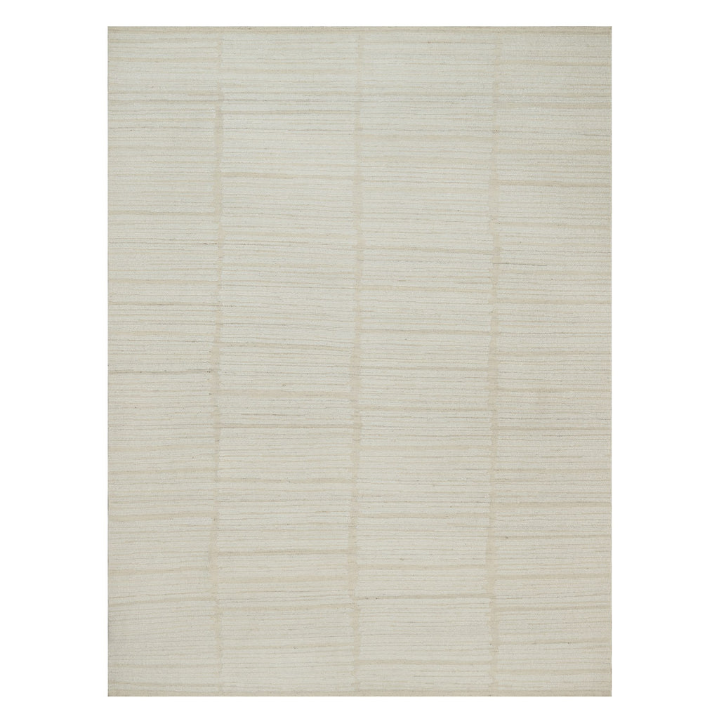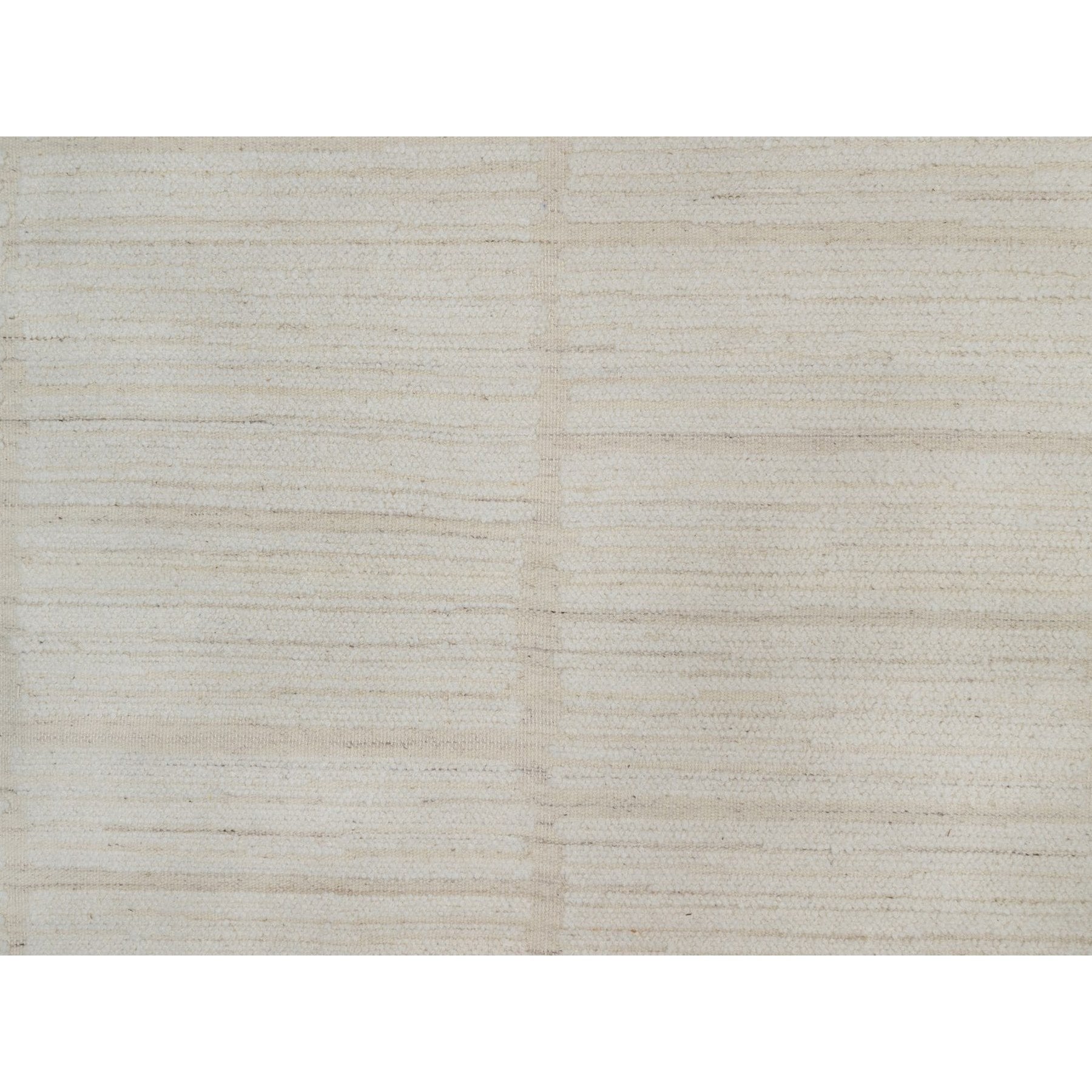 9'x12' Pearl White, Flat Weave With Pile, Tone On Tone, Undyed Natural Wool, Textured, Hand Woven, Oriental Rug FWR550308