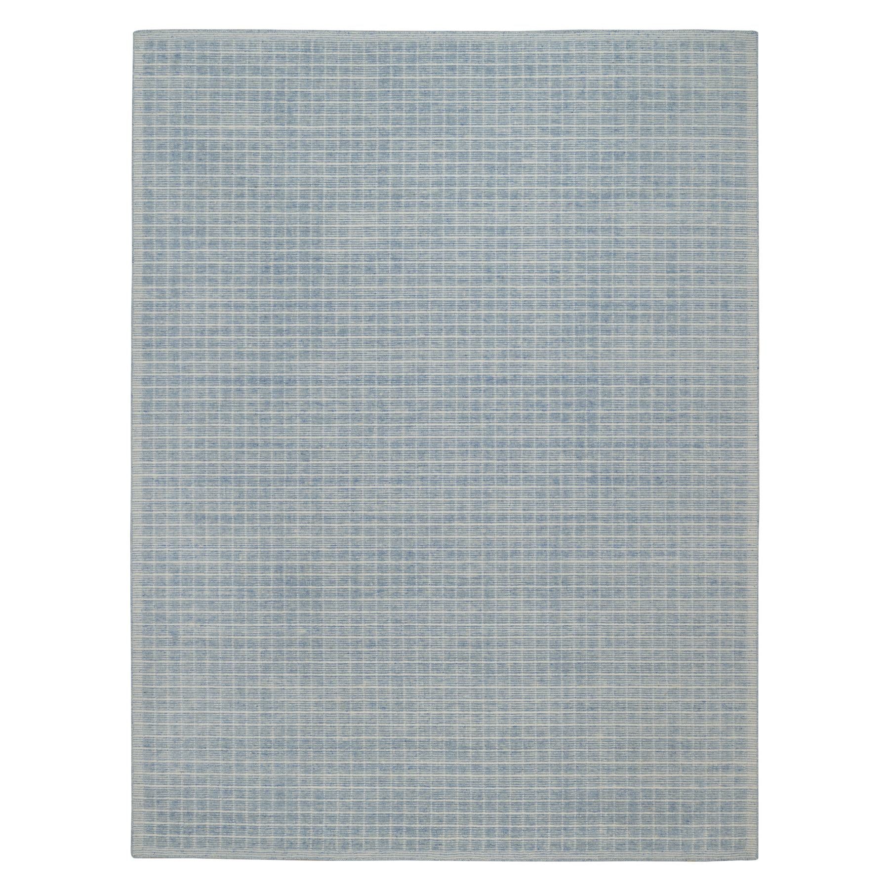 9'x12' Ruddy Blue, Loomed Knotted, Modern Plain Decor Box Design, Pure Wool, Soft To The Touch, Oriental Rug FWR550140