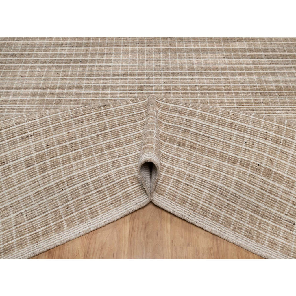 9'x12' Sesame Brown, Modern Plain Decor Box Design, Loomed Knotted, Pure Wool, Soft To The Touch, Oriental Rug FWR550194