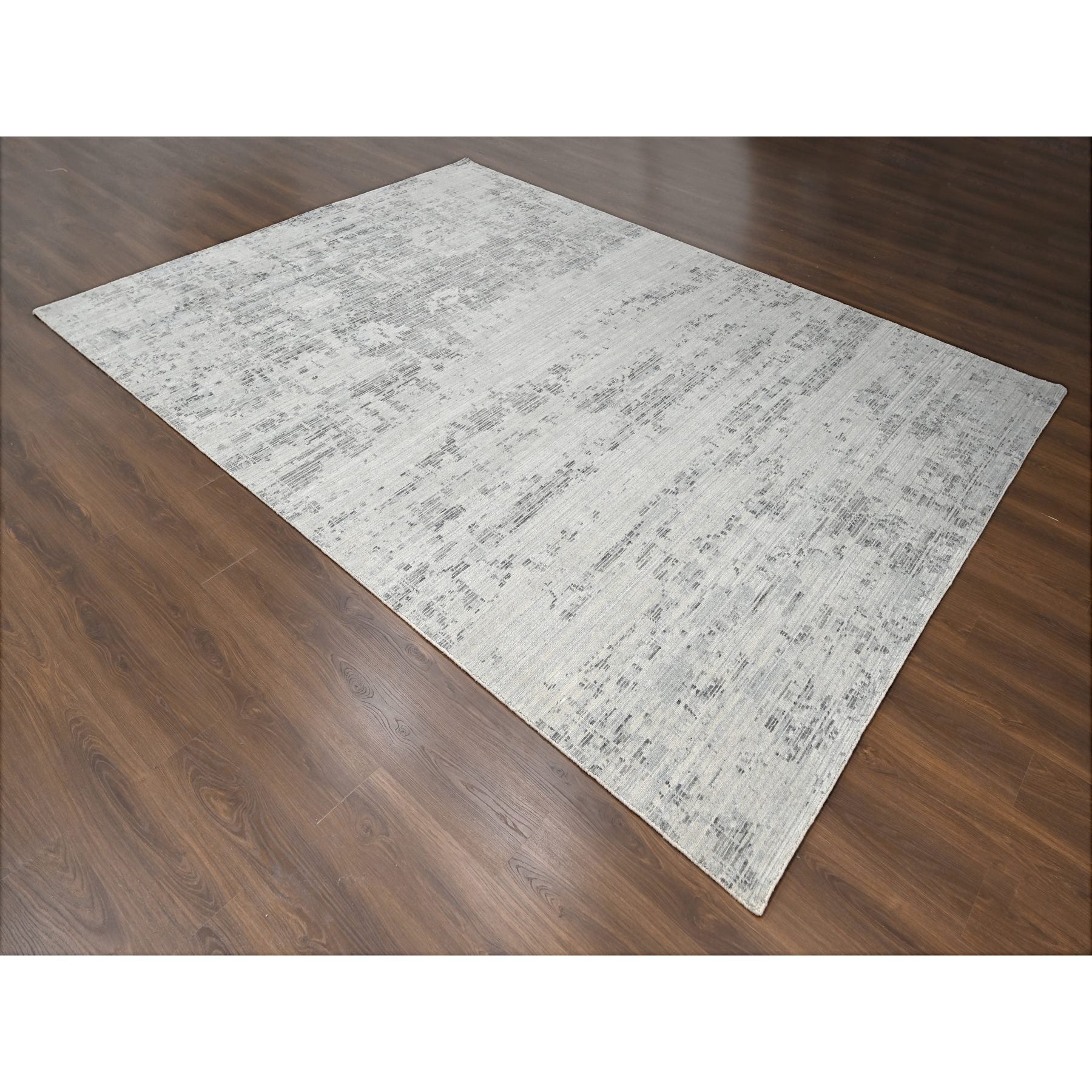 9'x12' Shadow White, Soft Pile, Hand Knotted, Undyed Natural Wool, Cut And Loop Technique, Nepali Oriental Rug FWR506994