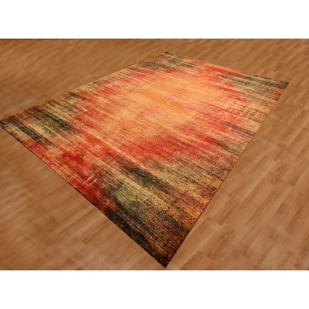 9'x12' Sunset Colors, Modern Design, Pure Sari Silk, Soft To The Touch, Hand Knotted, Oriental Rug FWR457050