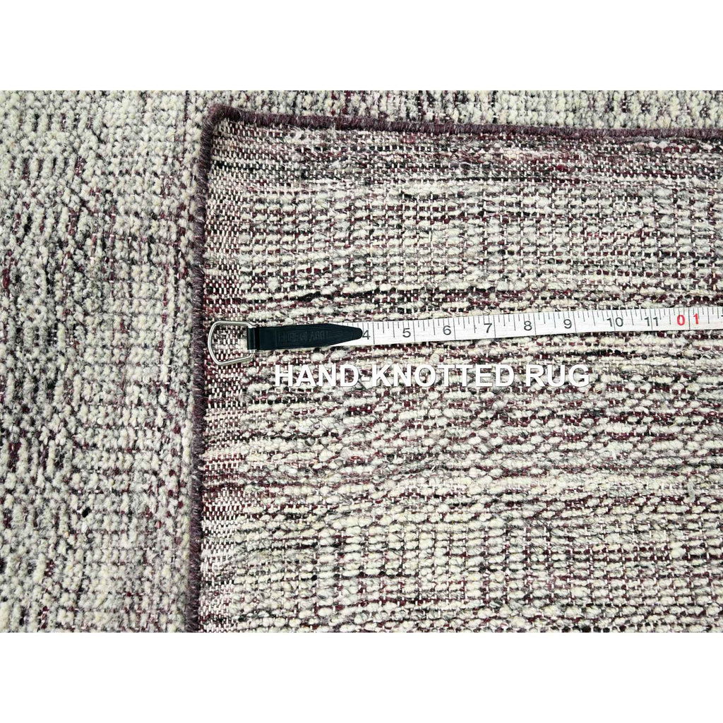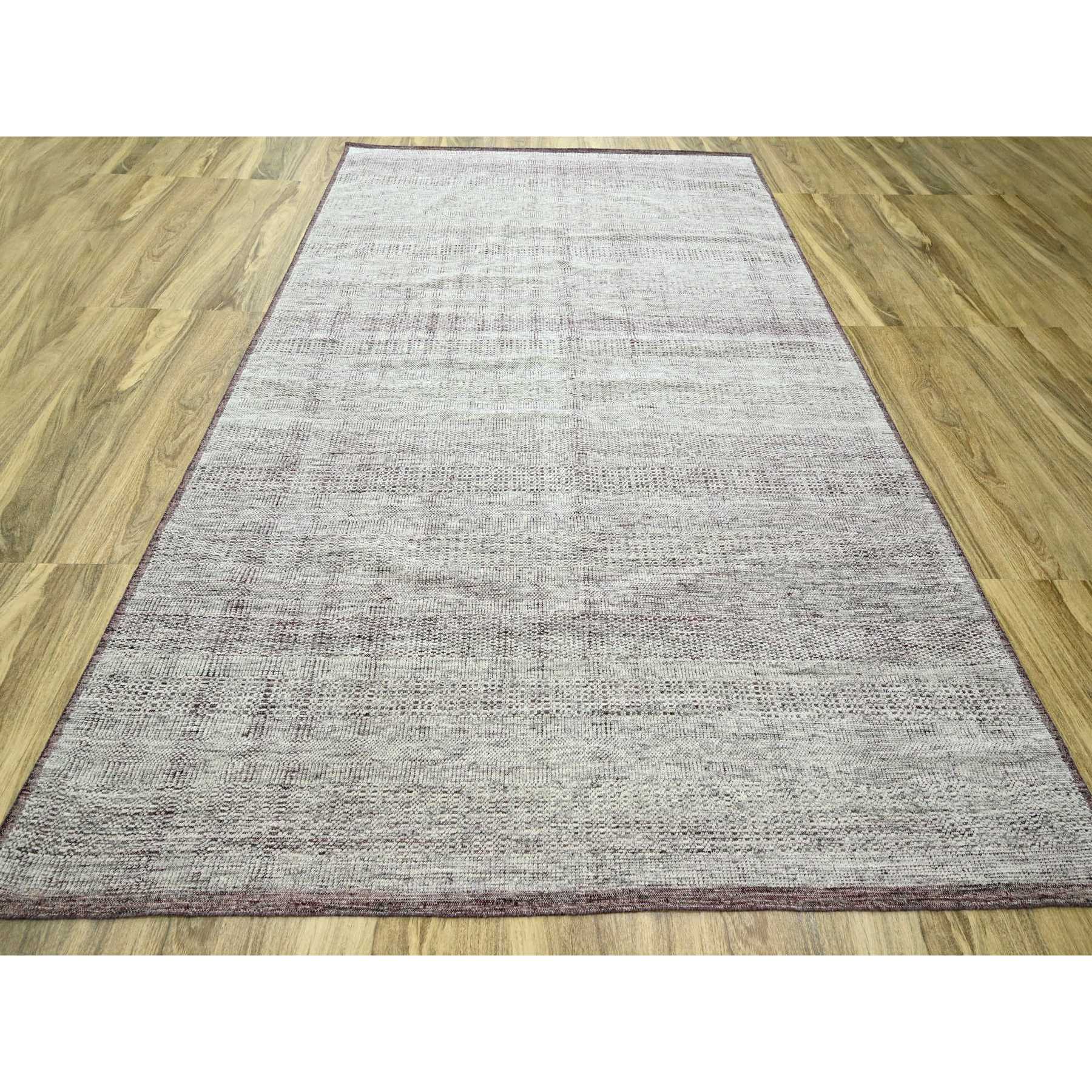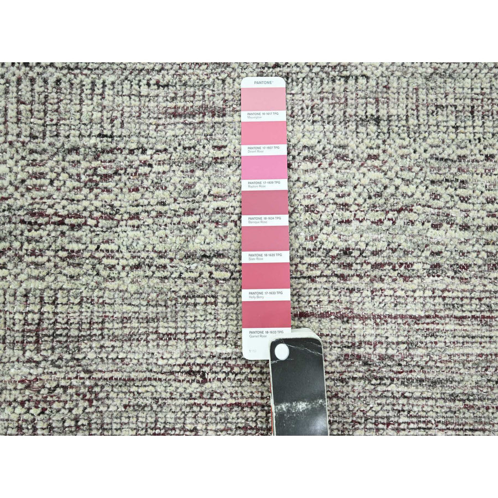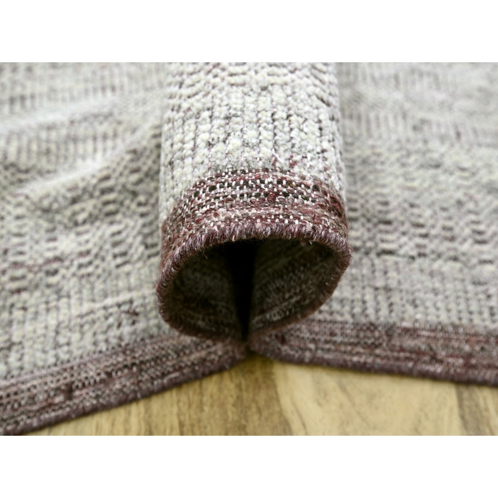 9'x12' Wine Red With Powder White, Oxidized And Distressed Grass Design With Exposed Warps, 100% Wool, Hand Knotted, Oriental Rug FWR457782