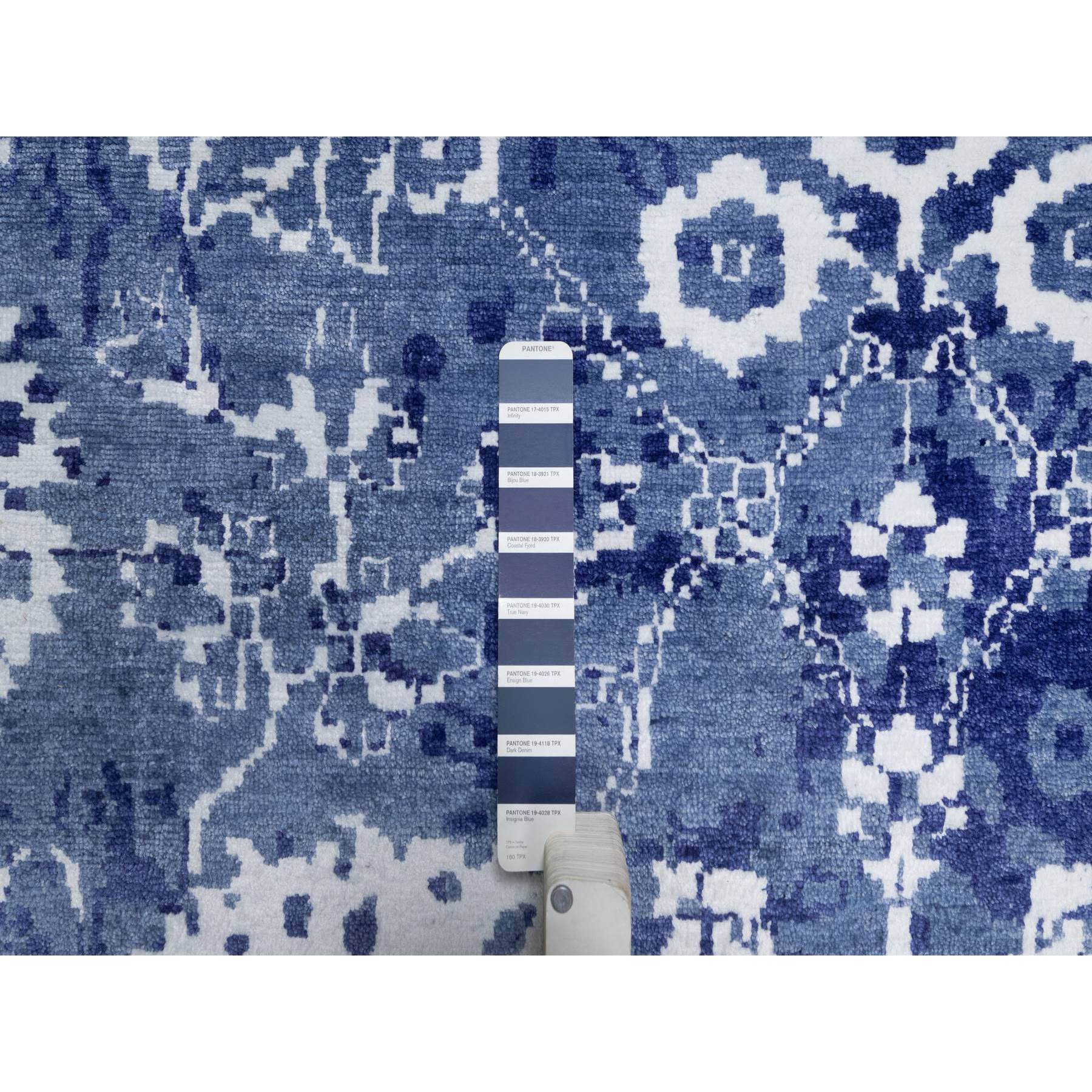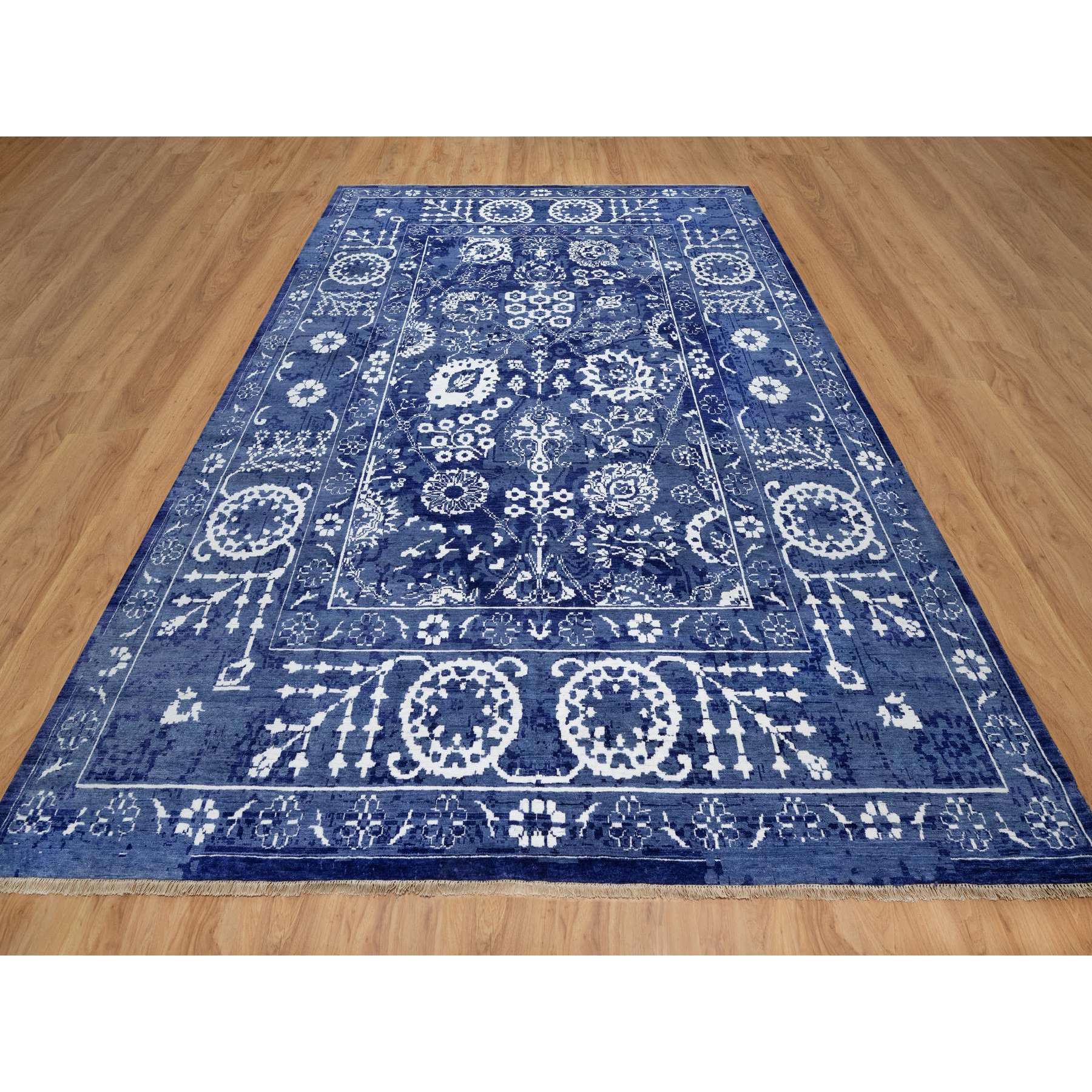 9'x12' Yale Blue, Hand Knotted, Tone On Tone, Tabriz With All Over Leaf Motifs, Thick And Plush, Wool And Silk, Oriental Rug FWR547332