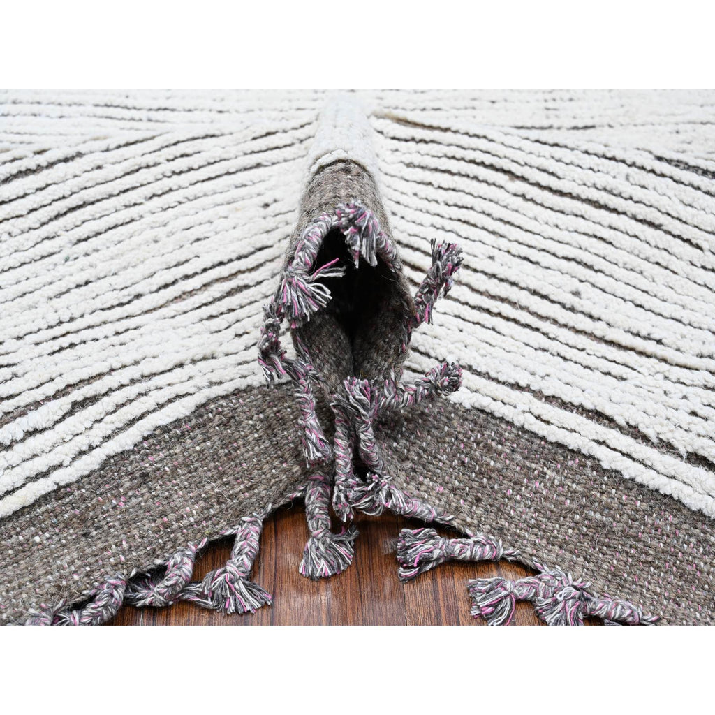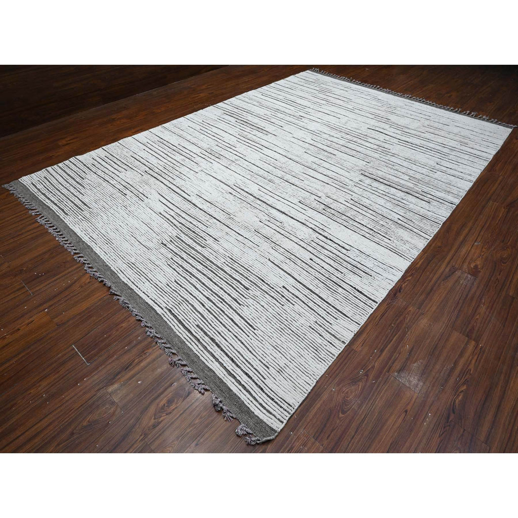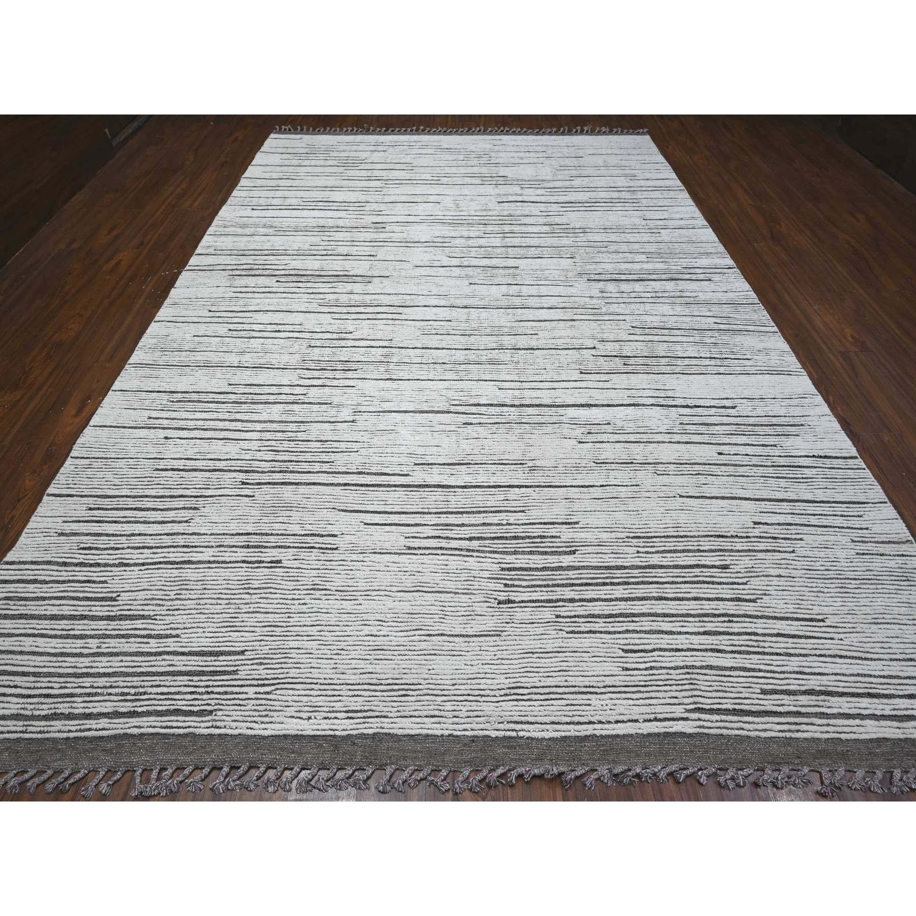 9'x13'2" Snow Cap White, Moroccan Weave Beni Ourain With All Over Line Pattern, Luxurious Pile, Hand Knotted, Soft Pure Wool, Special Size Oriental Rug FWR535140