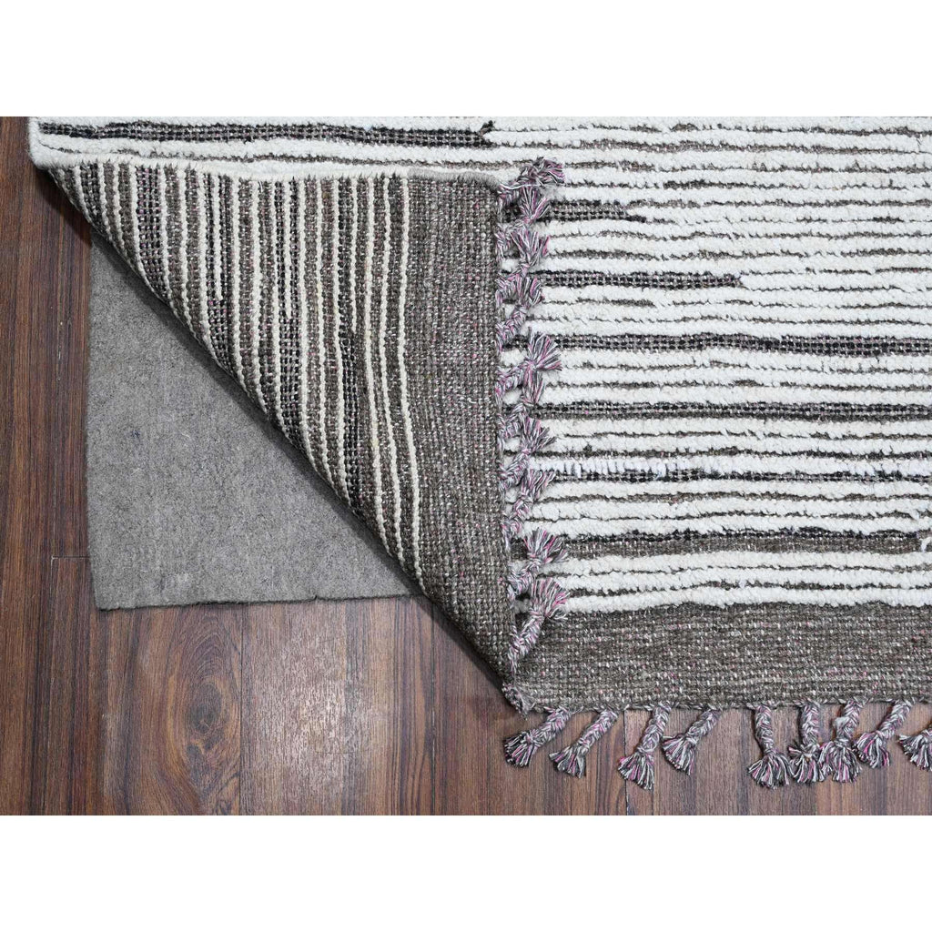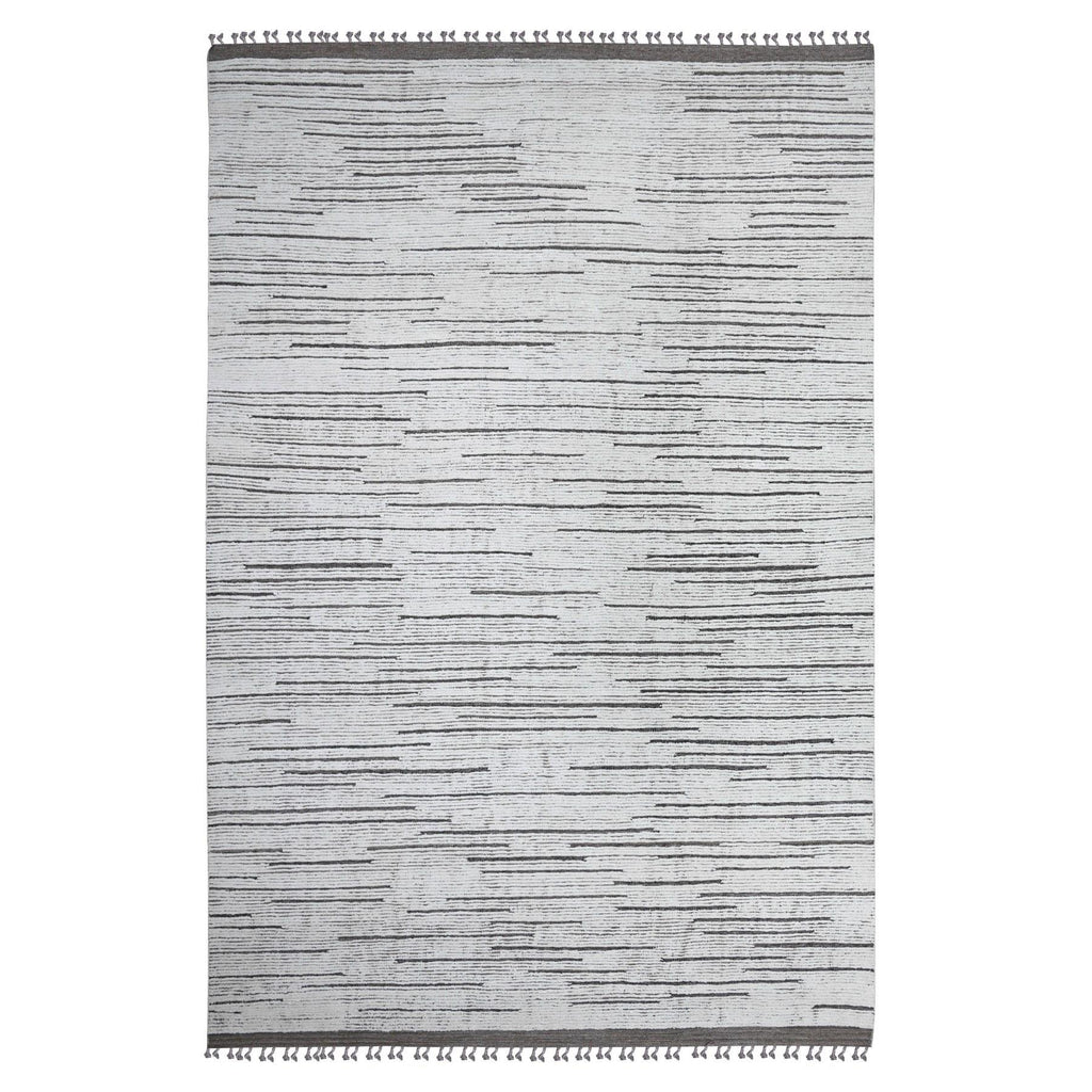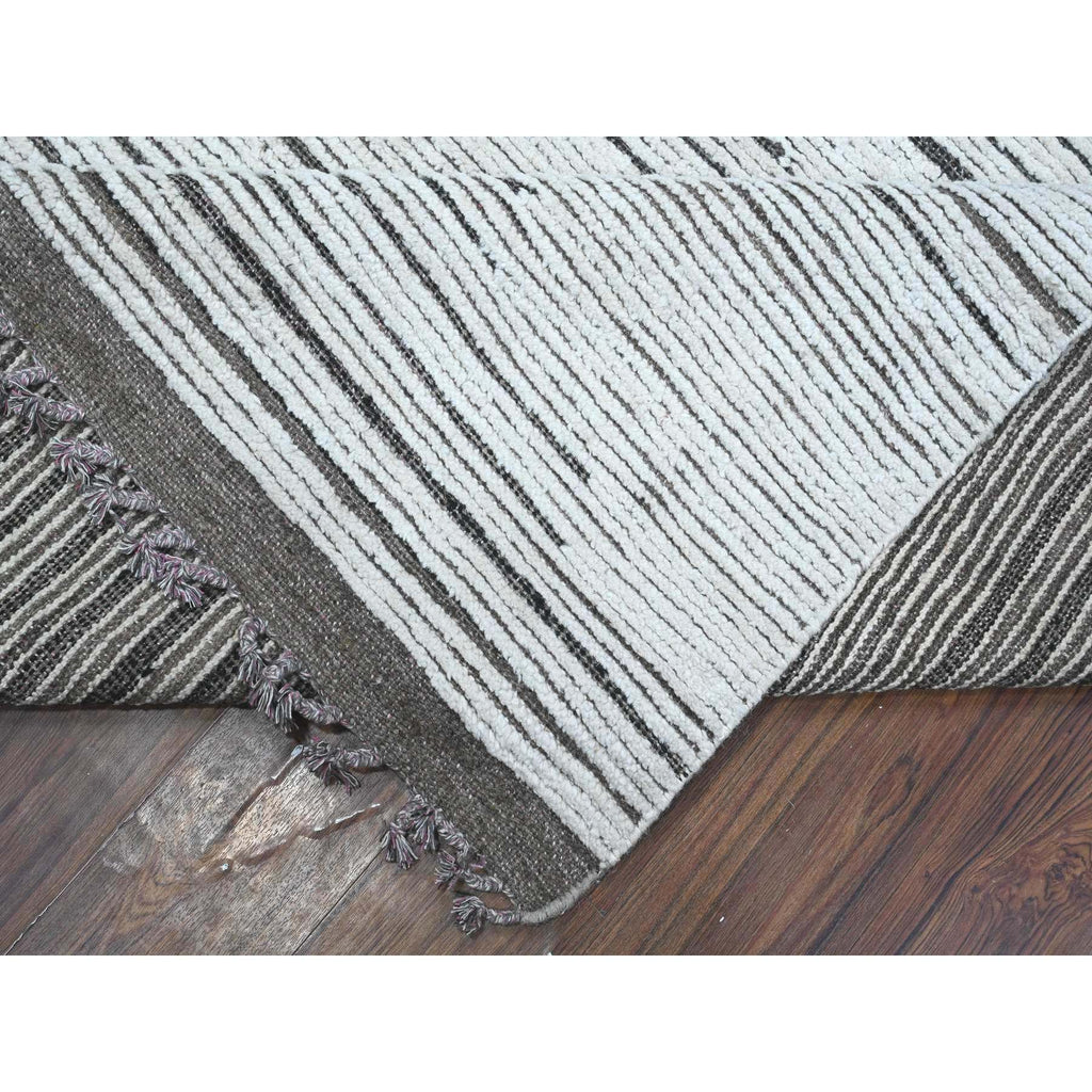 9'x13'2" Snow Cap White, Moroccan Weave Beni Ourain With All Over Line Pattern, Luxurious Pile, Hand Knotted, Soft Pure Wool, Special Size Oriental Rug FWR535140