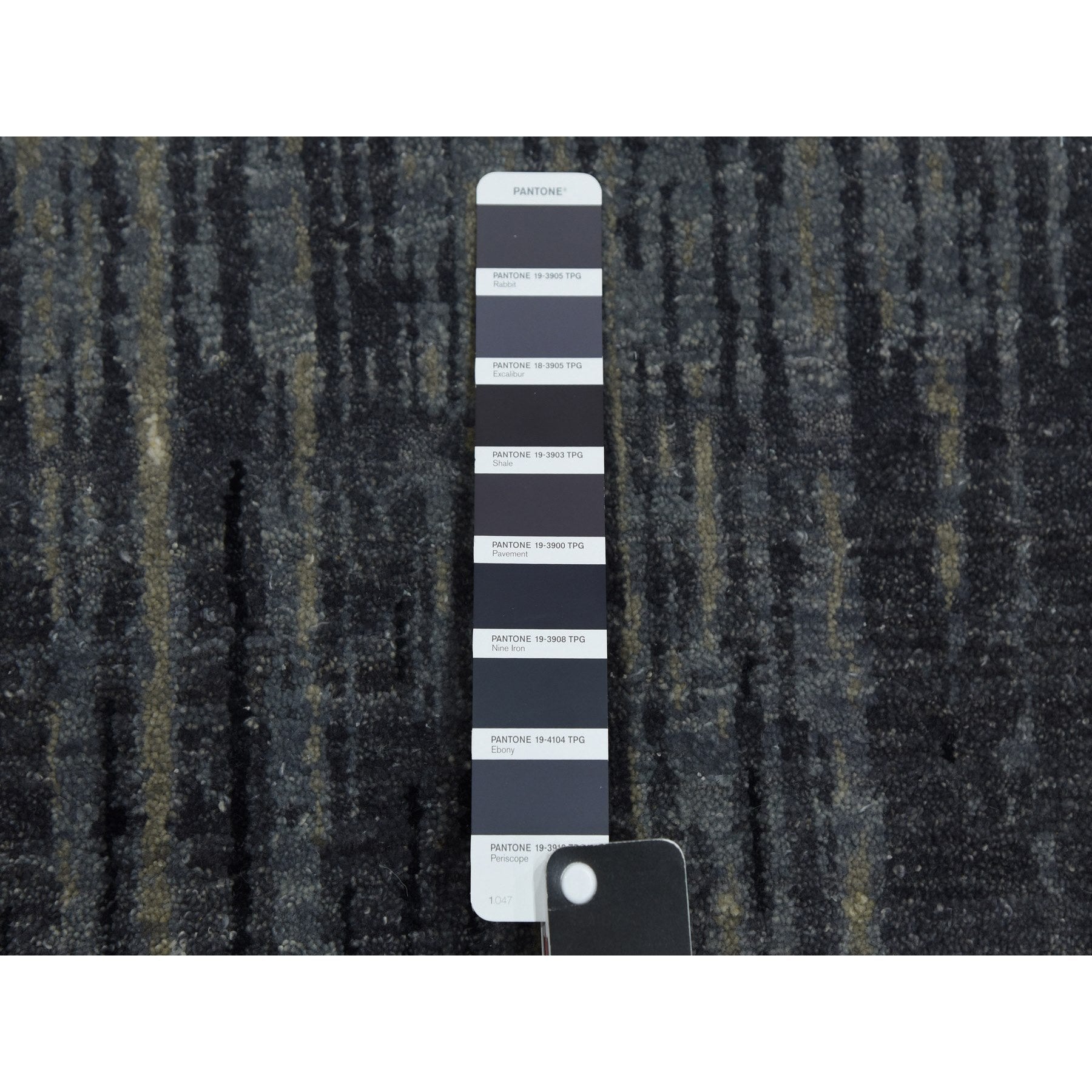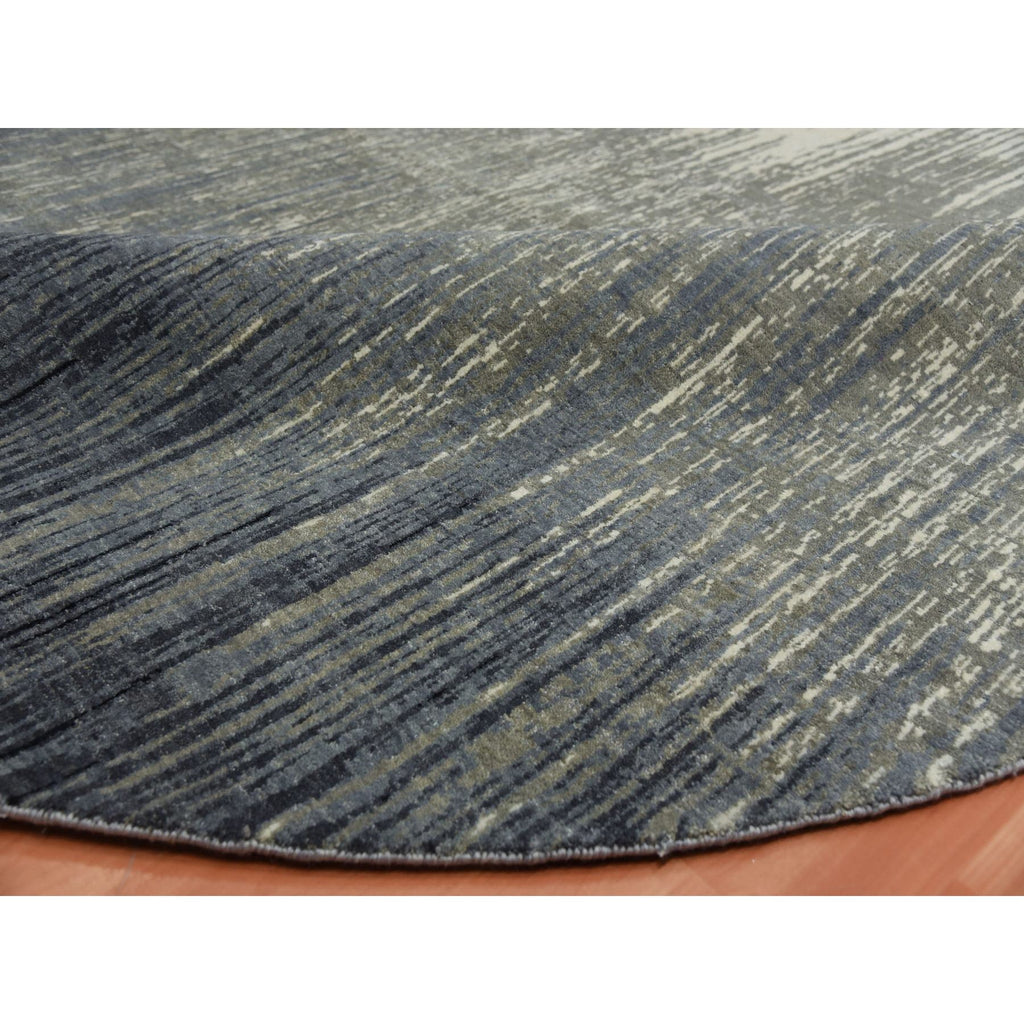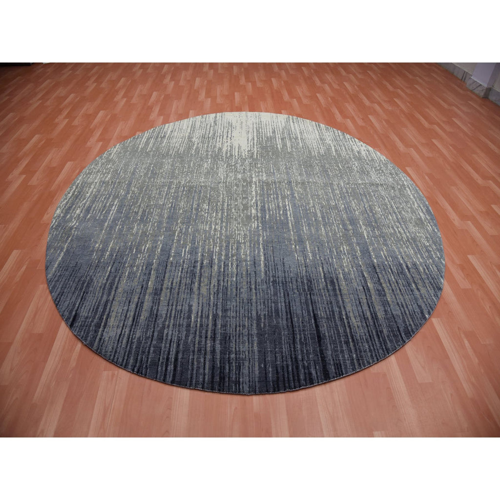 9'x9'1" Gray And Black Ombre Design Pure Wool Densely Woven Hand Knotted Modern Round Oriental Rug FWR450852