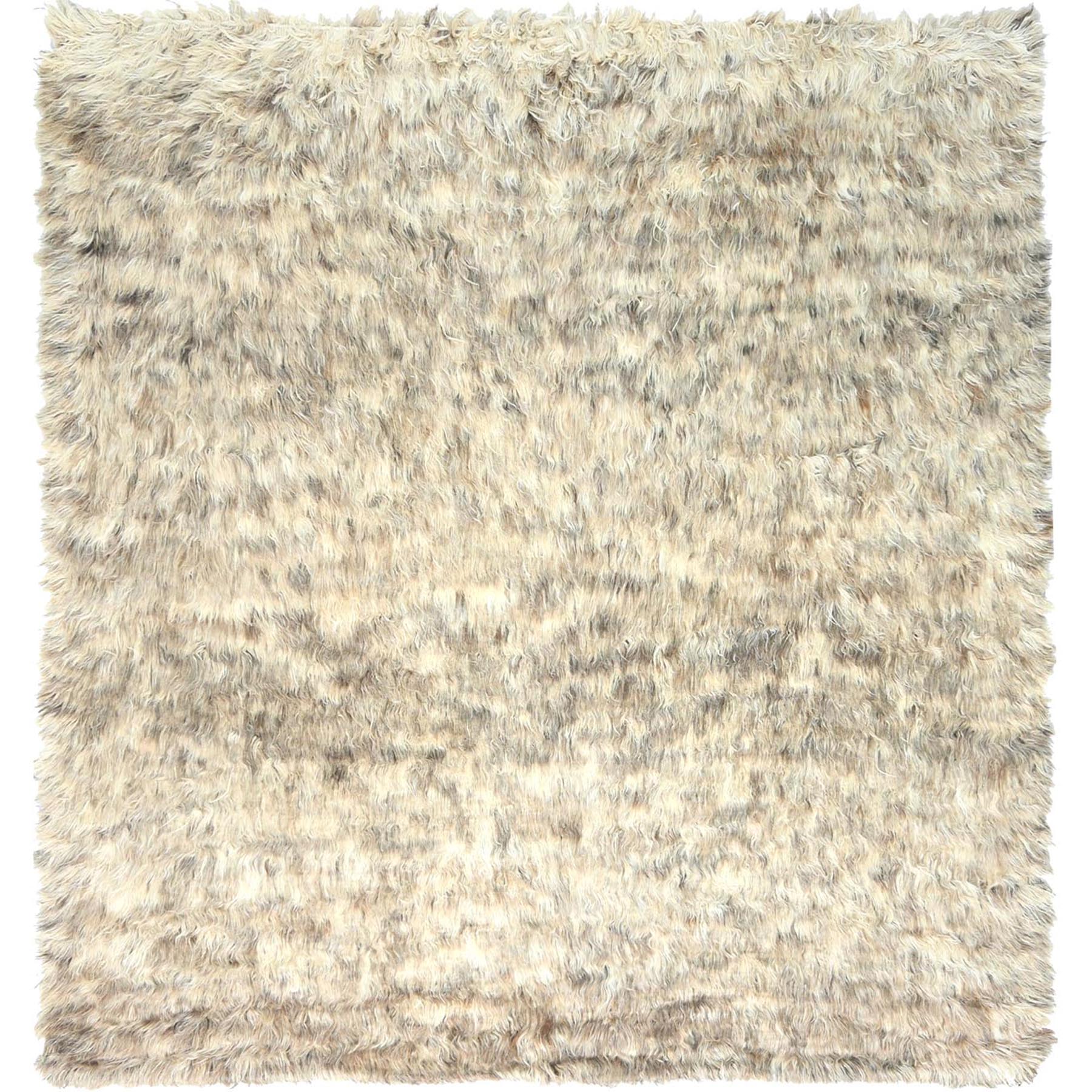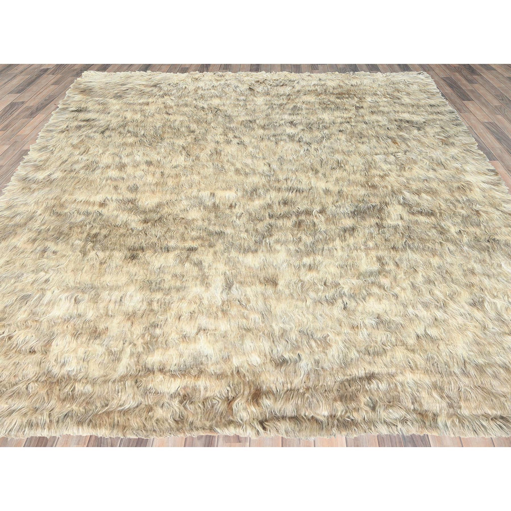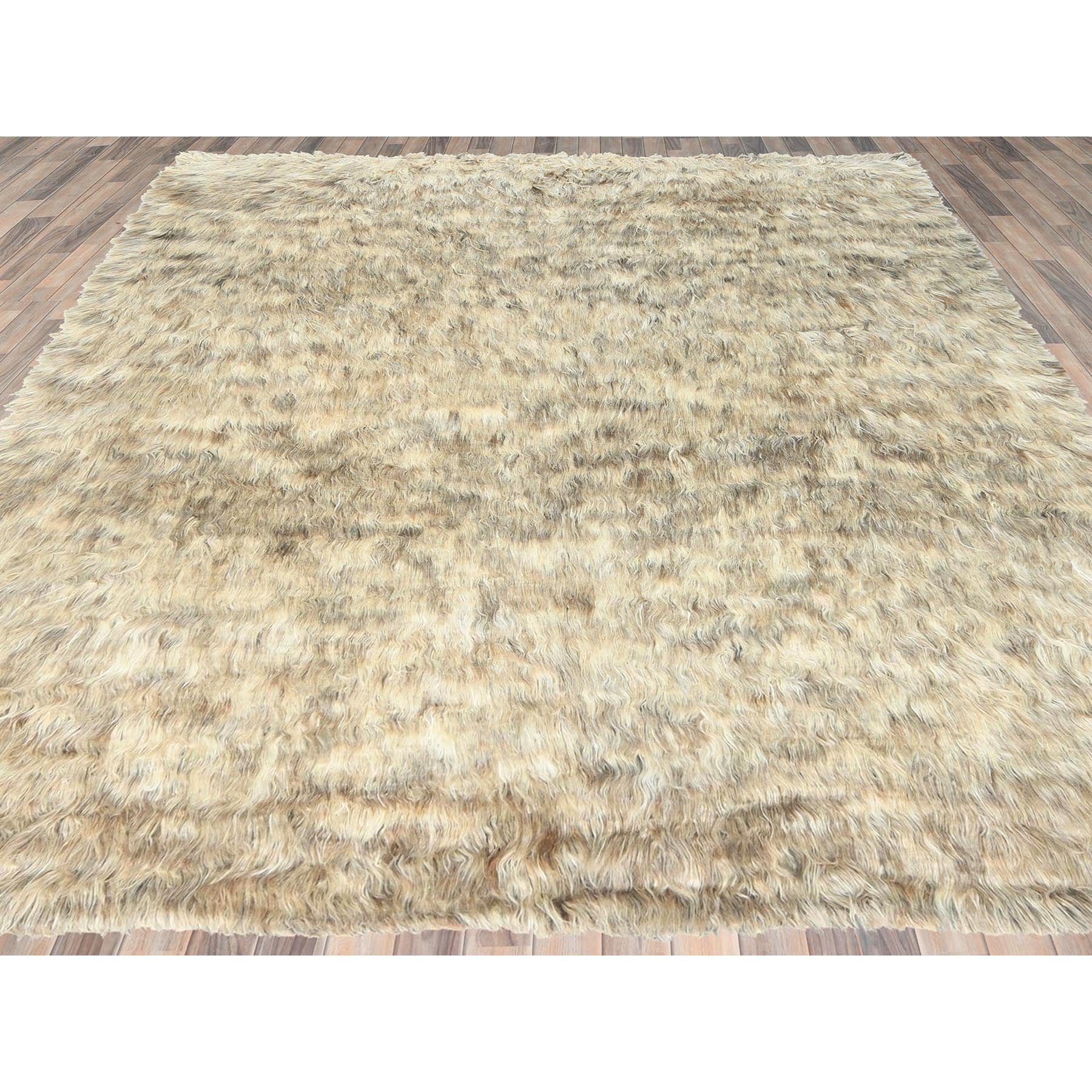 9'x9' Beige, Shag Flokati Greek Style, Undyed Natural Wool Hand Knotted, Square Oriental Rug FWR495396