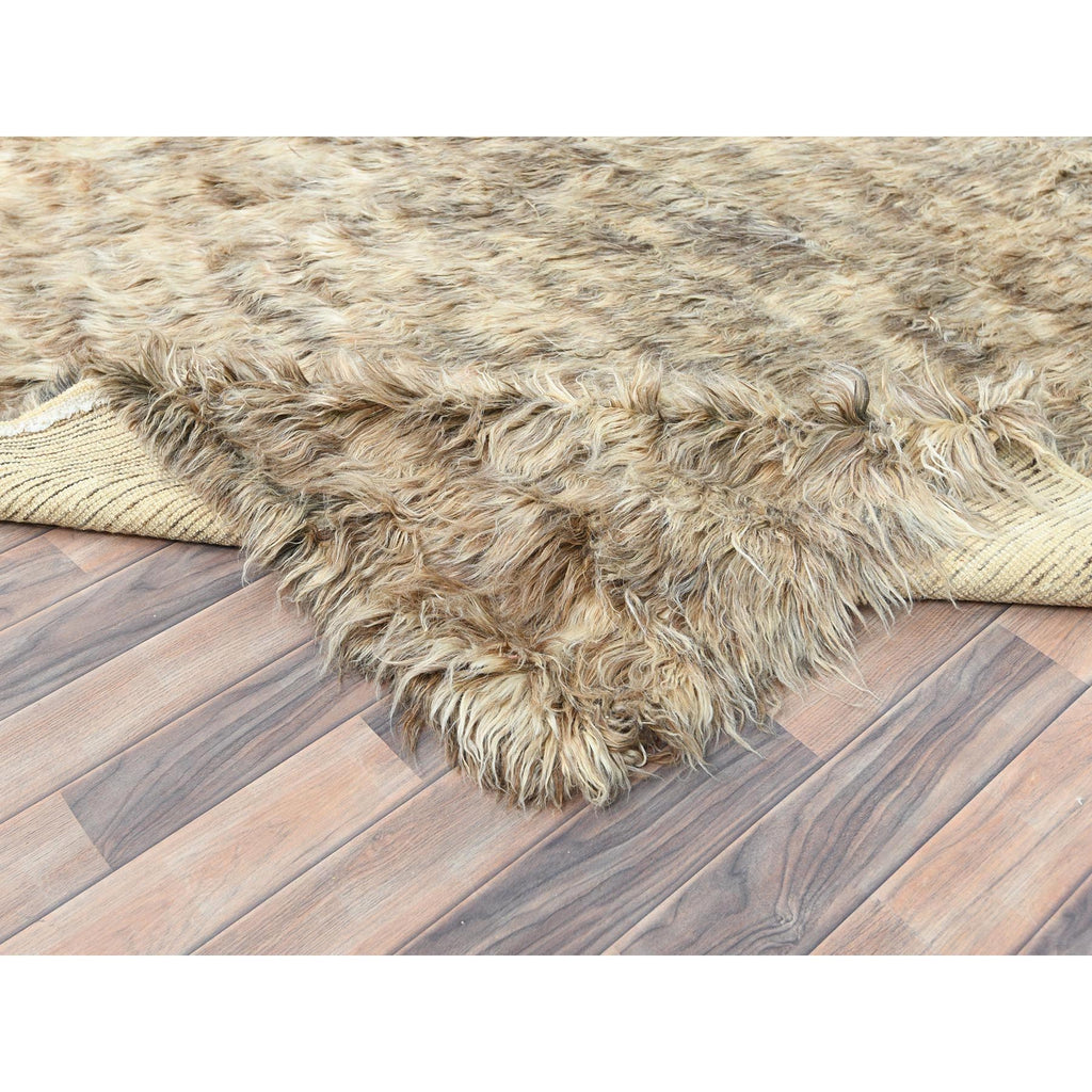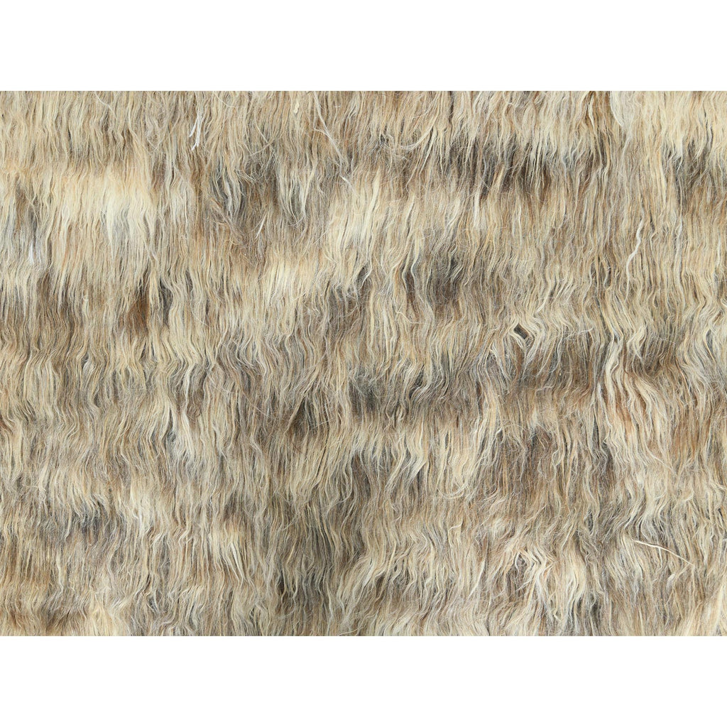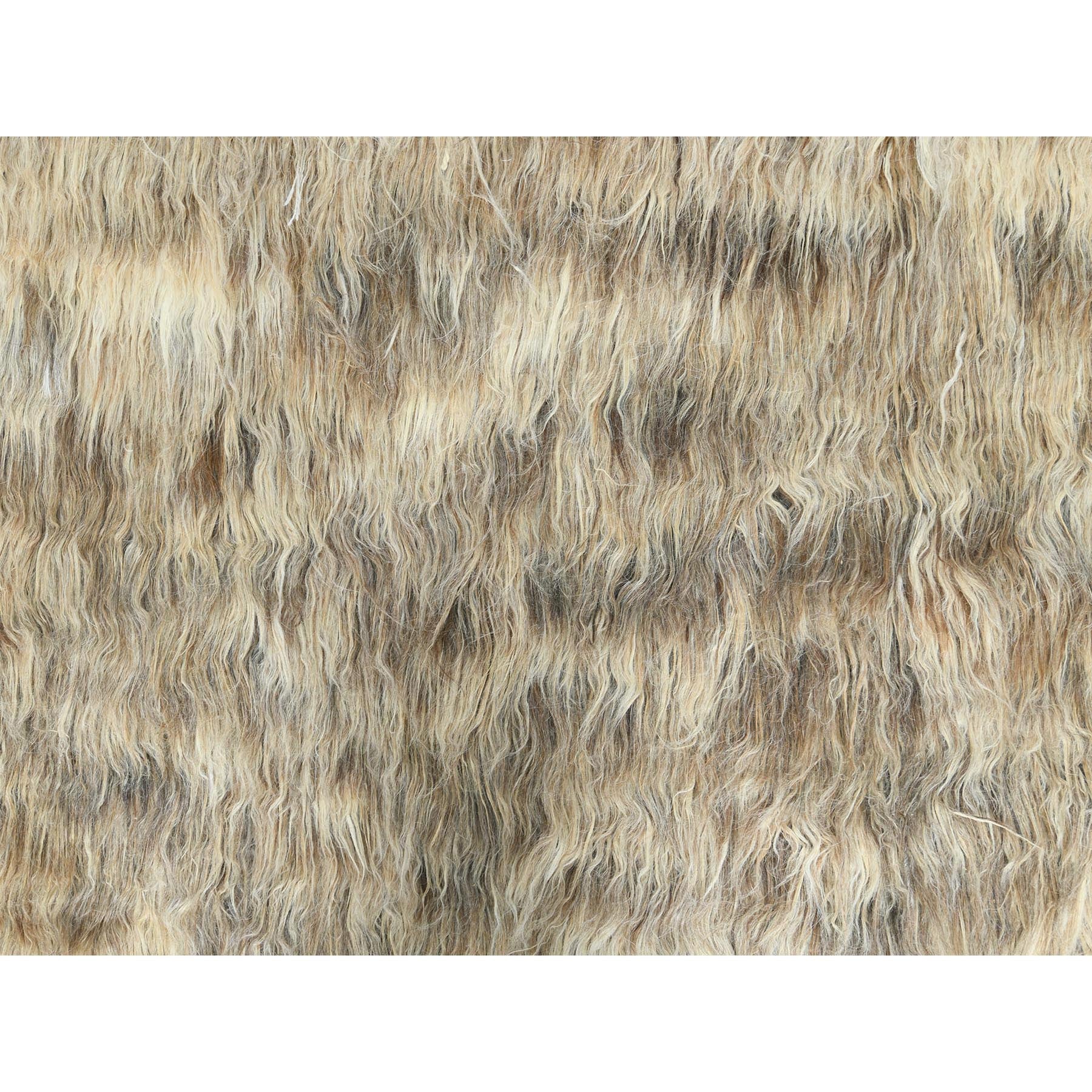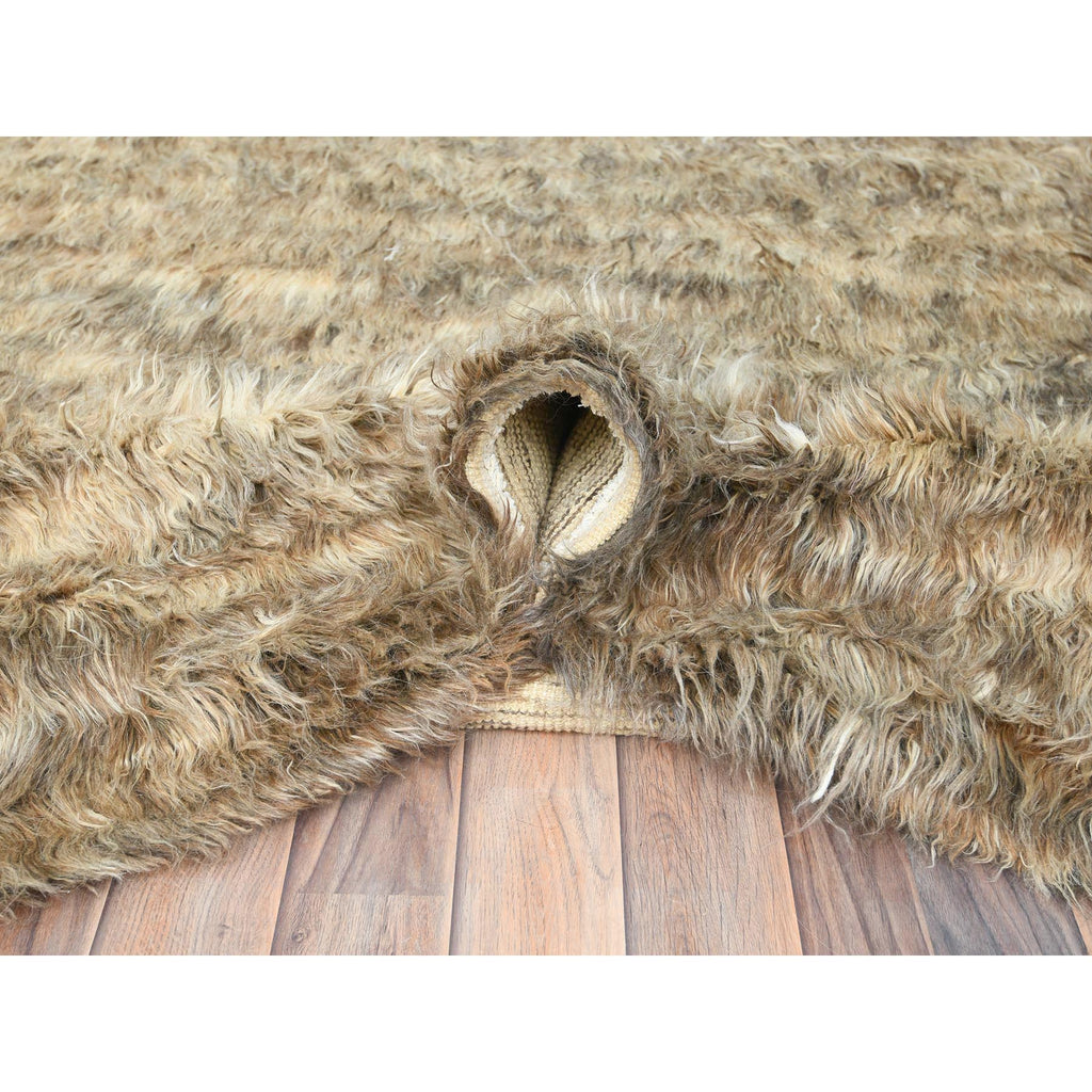 9'x9' Beige, Shag Flokati Greek Style, Undyed Natural Wool Hand Knotted, Square Oriental Rug FWR495396