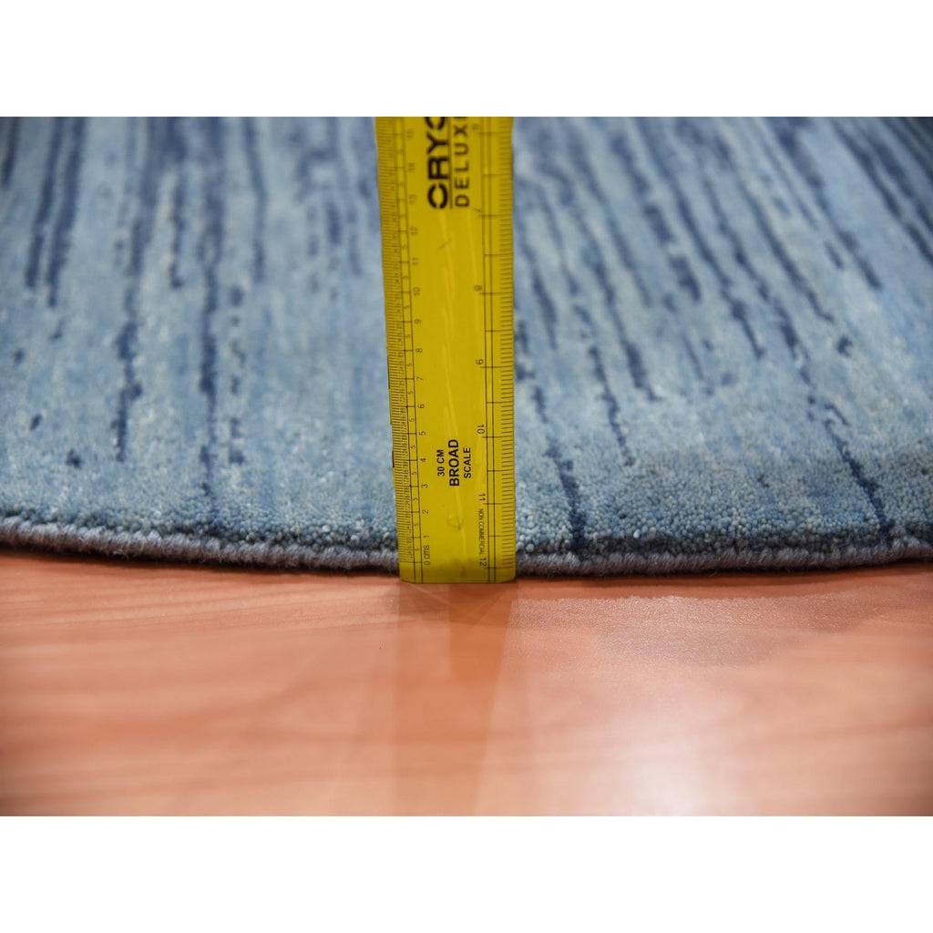 9'x9' Blue Oceanic Pure Wool Horizontal Ombre Design Round Hand Knotted Oriental Rug FWR400218