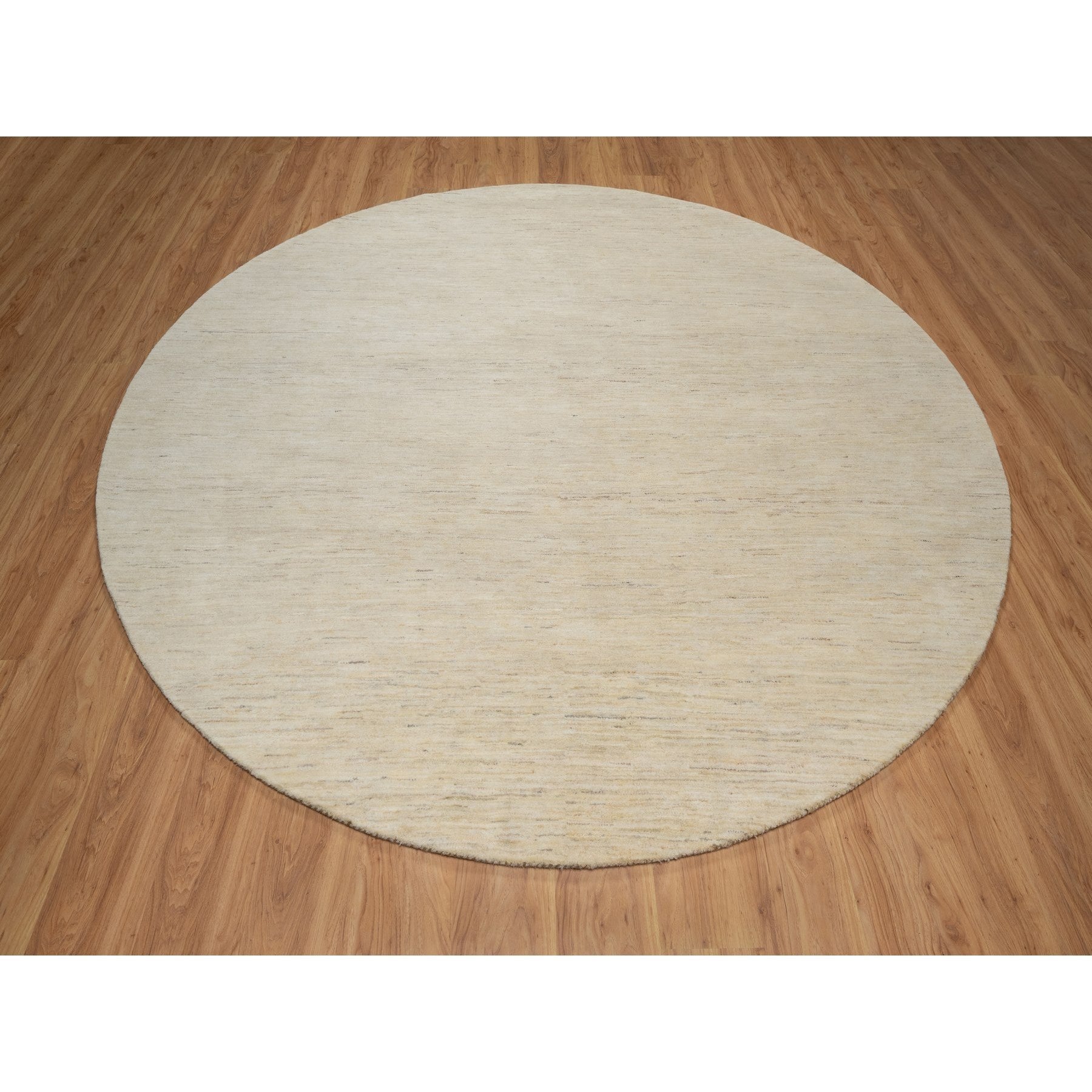 9'x9' Parchment White, Hand Knotted, Lori Buft Gabbeh, Modern, Plain Design, Thick And Plush, Pure Wool, Round, Oriental Rug FWR547860