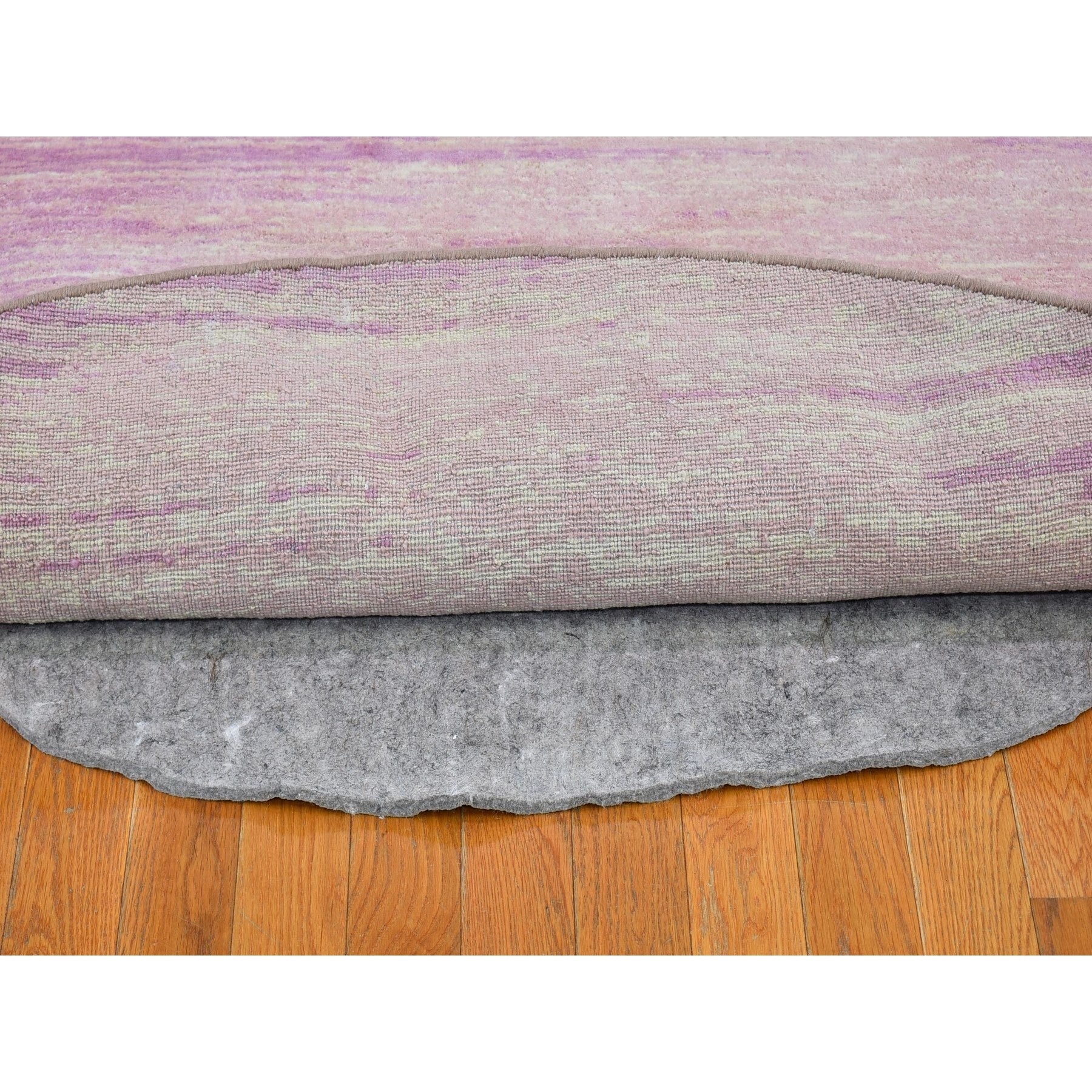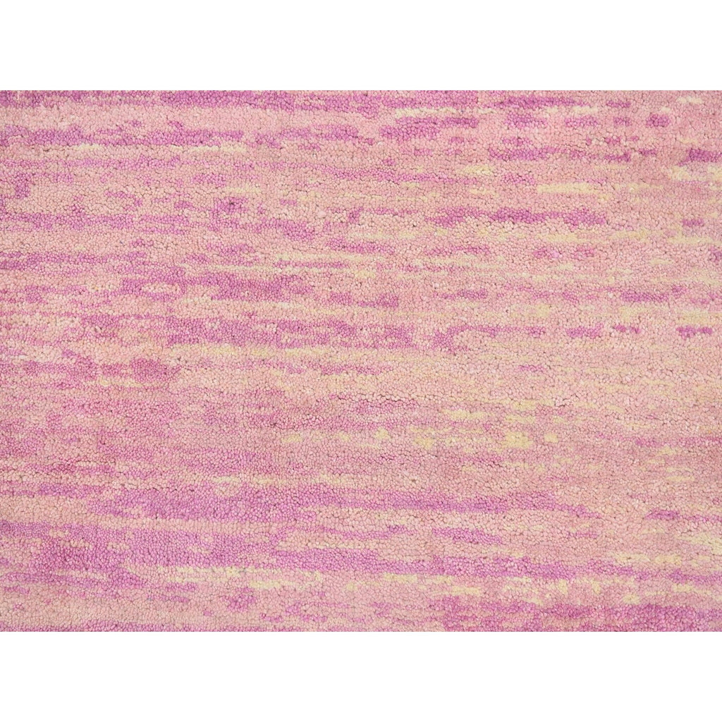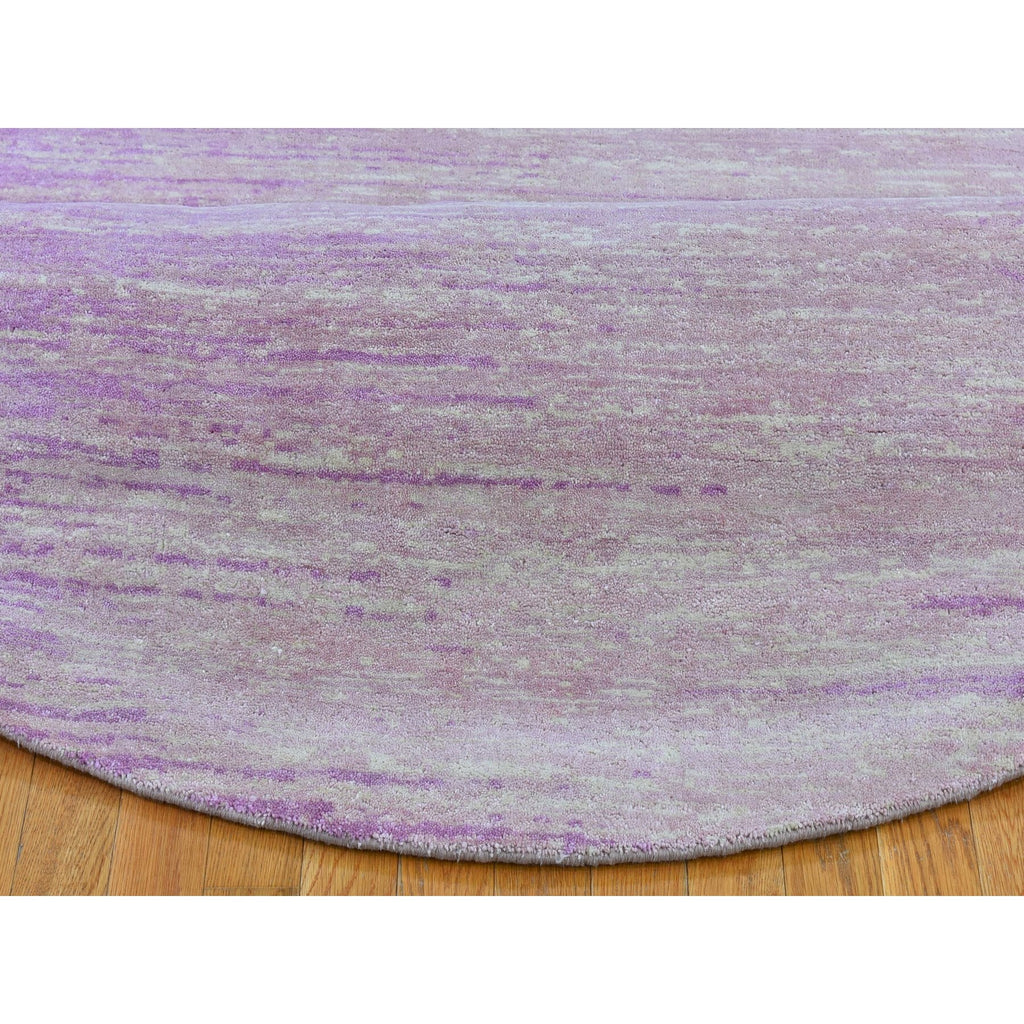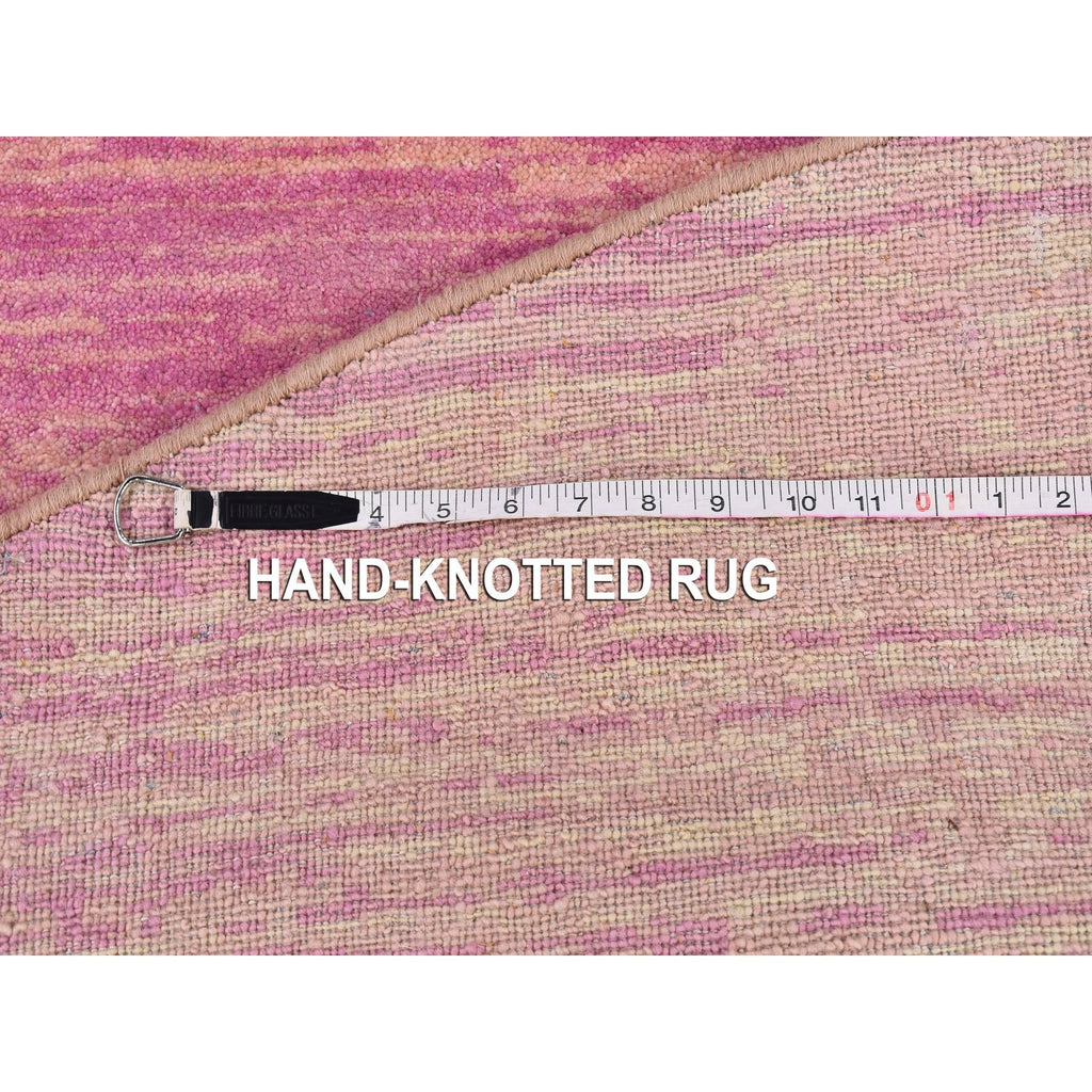 9'x9' Pink Zero Pile Organic Wool Only Horizontal Ombre Design Hand Knotted Round Oriental Rug FWR400212