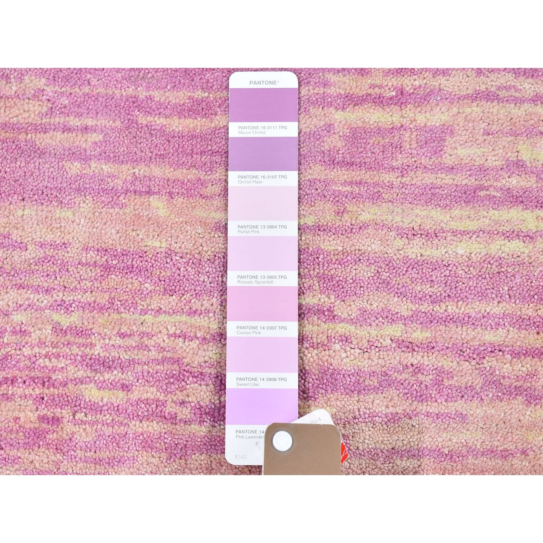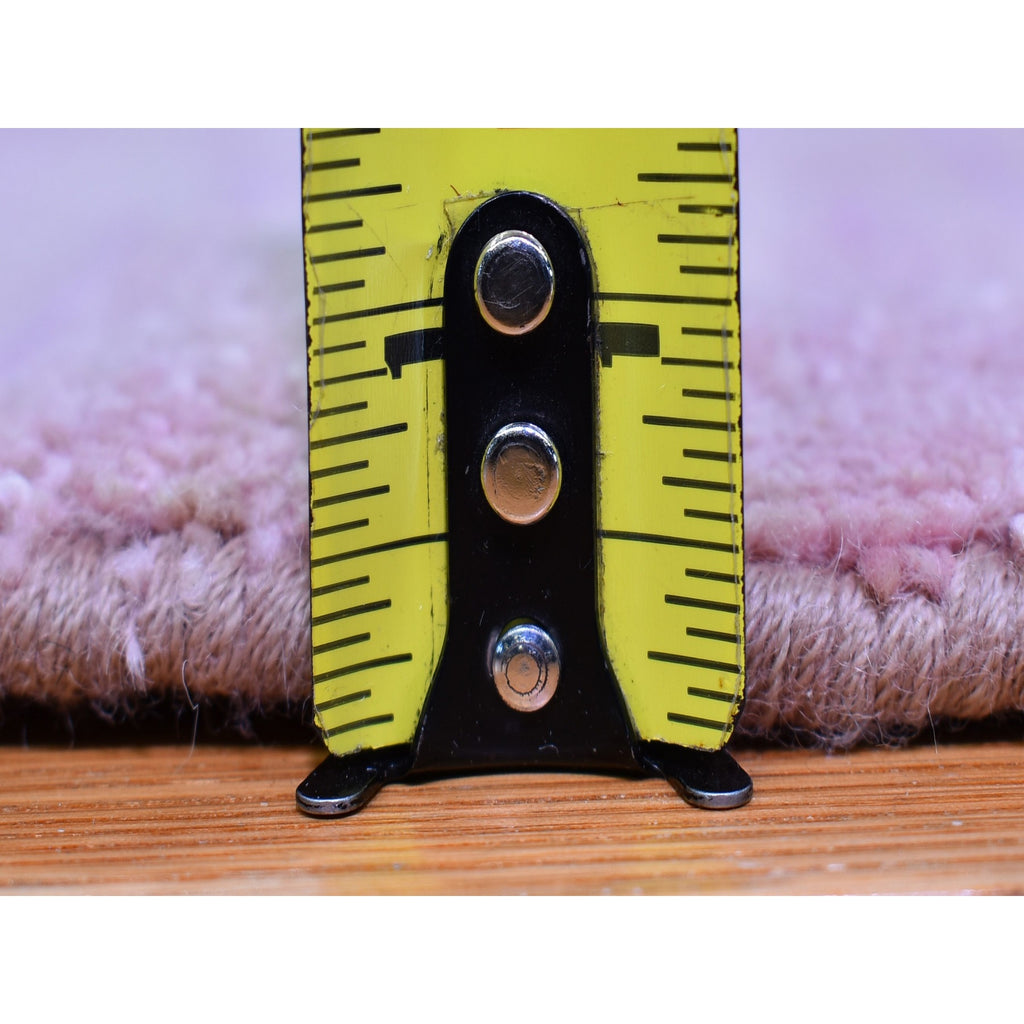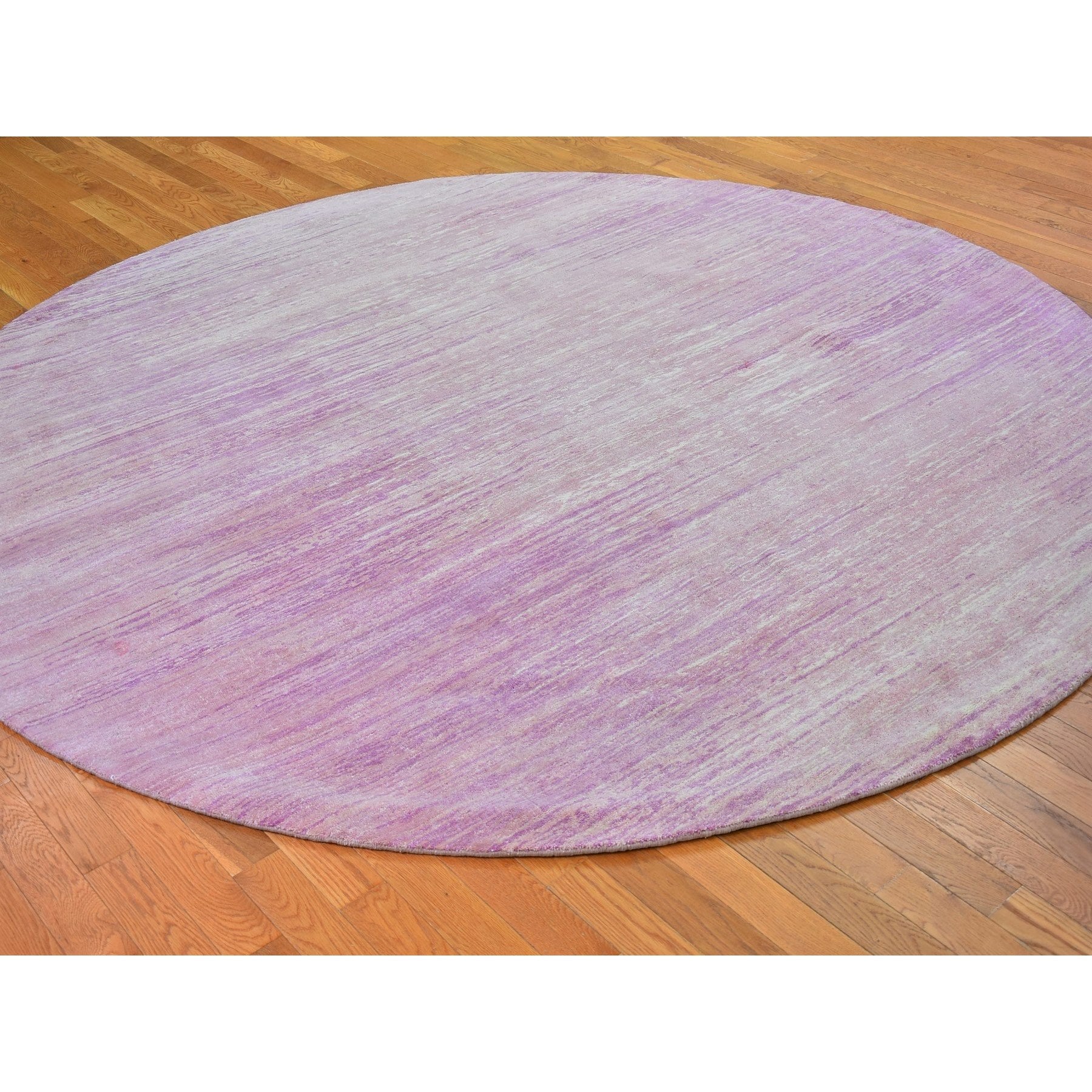 9'x9' Pink Zero Pile Organic Wool Only Horizontal Ombre Design Hand Knotted Round Oriental Rug FWR400212