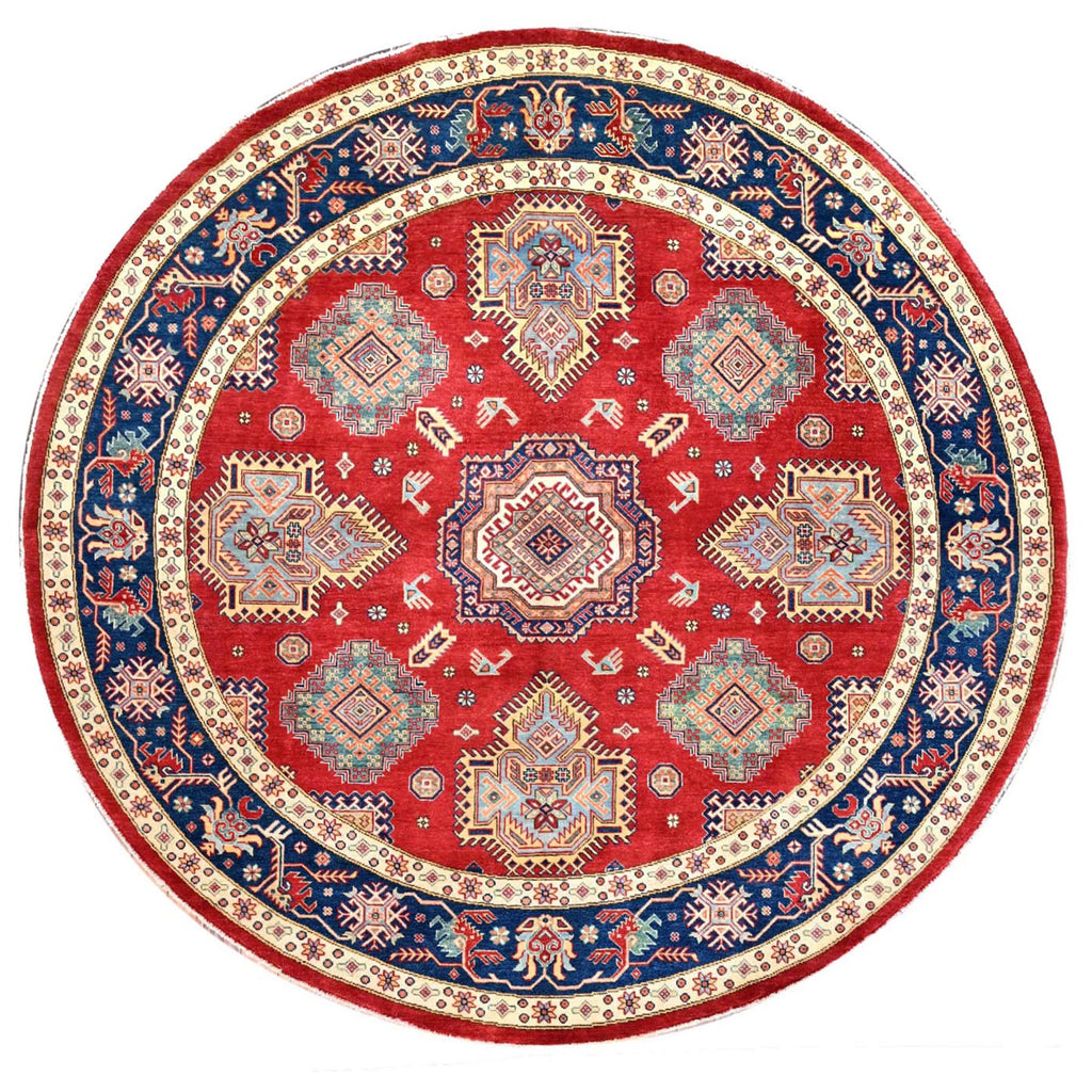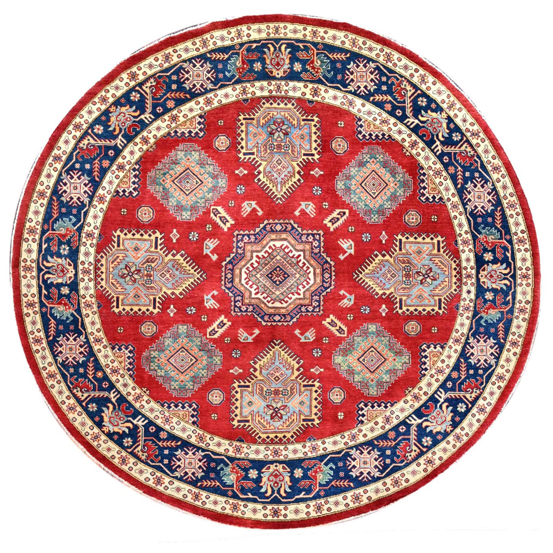 9'x9' Rufous Red, Denser Weave Special Kazak Geometric Design, Vegetable Dyes And Natural Wool, Hand Knotted Round Oriental Rug FWR518856