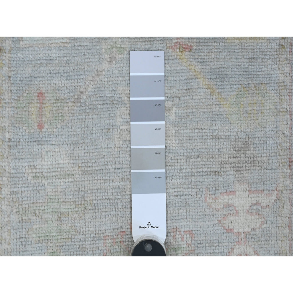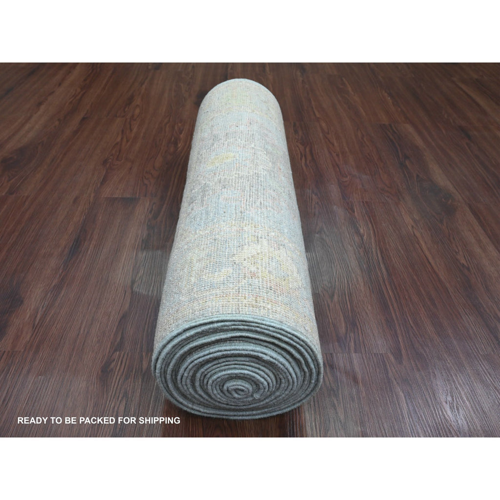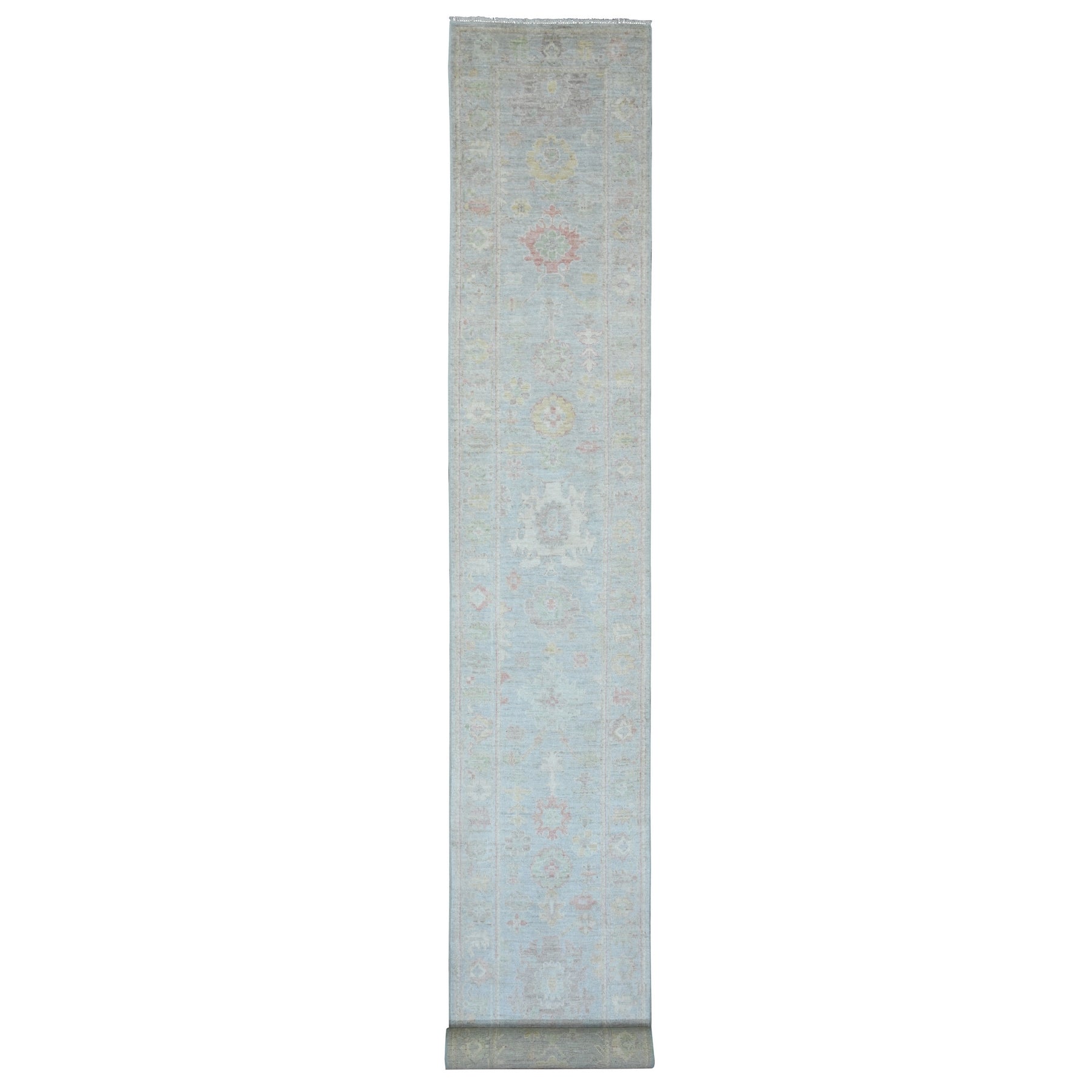 Stone Blue, 100% Wool, Afghan Angora Oushak With All Over Leaf Design, Vegetable Dyes, Hand Knotted, Xl Runner, Oriental Rug FWR539610